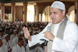 HADDAD Alwi saat mengajak hadirin melantunkan salawat terhadap Rasulullah di Almuhsinin, kompleks Alkhairaat, Kamis (26/12/2013) malam. Ketua Utama Alkhairaat, Habib Saggaf Aljufri dan keluarga berkenan menyaksikan acara ini. ...