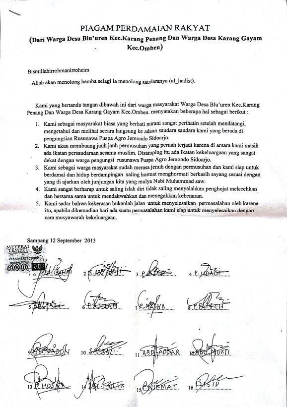 Jakarta _ Ada lima pernyataan yang sudah disepakati bersama oleh warga Syiah dengan masyarakat Kecamatan Omben dan Karang Penang Sampang Madura. Senin, 23 September 2013, kedua...