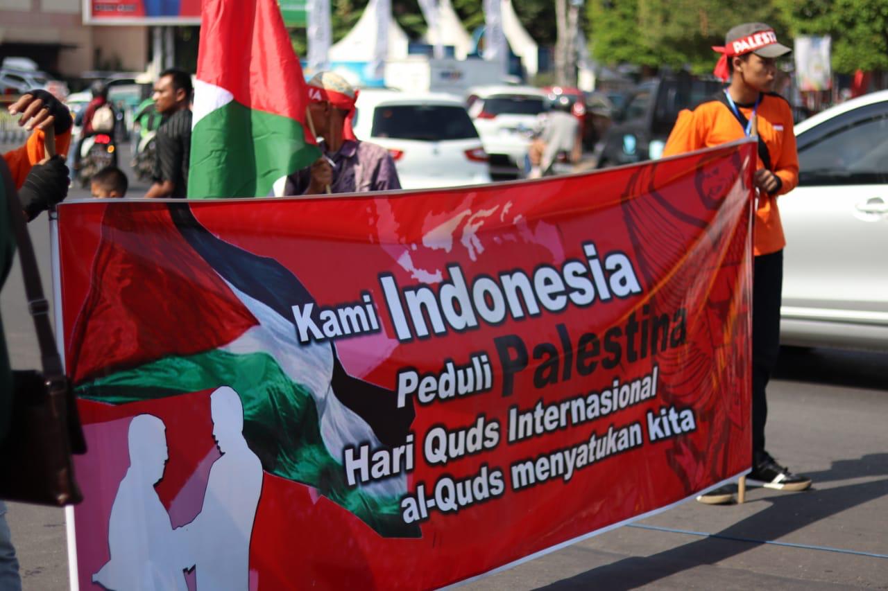 Ratusan orang di Semarang, Jawa Tengah menggelar demonstrasi besar untuk memperingati Yaumul Quds al-Alami pada Jumat (31/05/19). Mereka meneriakkan yel-yel anti Israel dan AS. (IT)