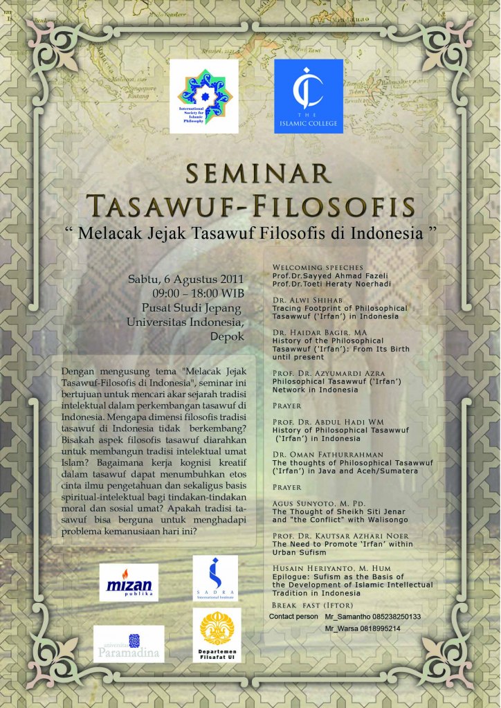 Sejalan dengan pesan Konperensi Sufi Internasional yang diselenggarakan oleh Pengurus Besar Nahdlatul Ulama (PBNU) di Jakarta, 16 Juli 2011 lalu, yang menyerukan masyarakat khususnya umat Islam...