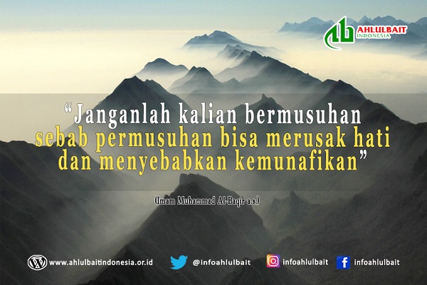 “Janganlah kalian bermusuhan sebab permusuhan bisa merusak hati dan menyebabkan kemunafikan” (Imam Muhammad Al-Baqir a.s.)