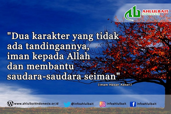 Imam Hasan Al-Askari as berkata: “Dua karakter yang tidak ada tandingannya, iman kepada Allah dan membantu saudara-saudara seiman.”