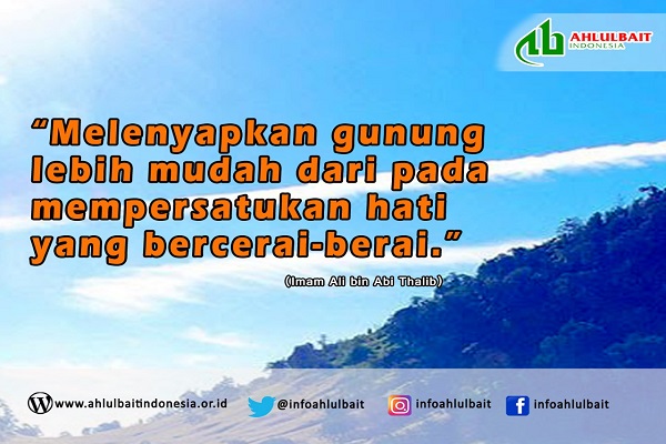 Imam Ali as Berkata: “Melenyapkan gunung lebih mudah dari pada mempersatukan hati yang bercerai-berai”