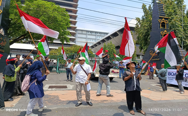 Semarang, 15 Februari 2026 — Sekitar seratus orang yang tergabung dalam Solidaritas Muslim Indonesia untuk Al Quds (SMIQ) menggelar aksi unjuk rasa di Jalan Pahlawan, Semarang, Sabtu pagi (14/2). Massa berkumpul di depan Gedung Pemerintah Provinsi Jawa Tengah dan Gedung DPRD Jawa Tengah untuk menyatakan penolakan terhadap keikutsertaan Indonesia dalam “Board of Peace” (BoP), forum yang disebut sebagai inisiatif Presiden Amerika Serikat Donald Trump.