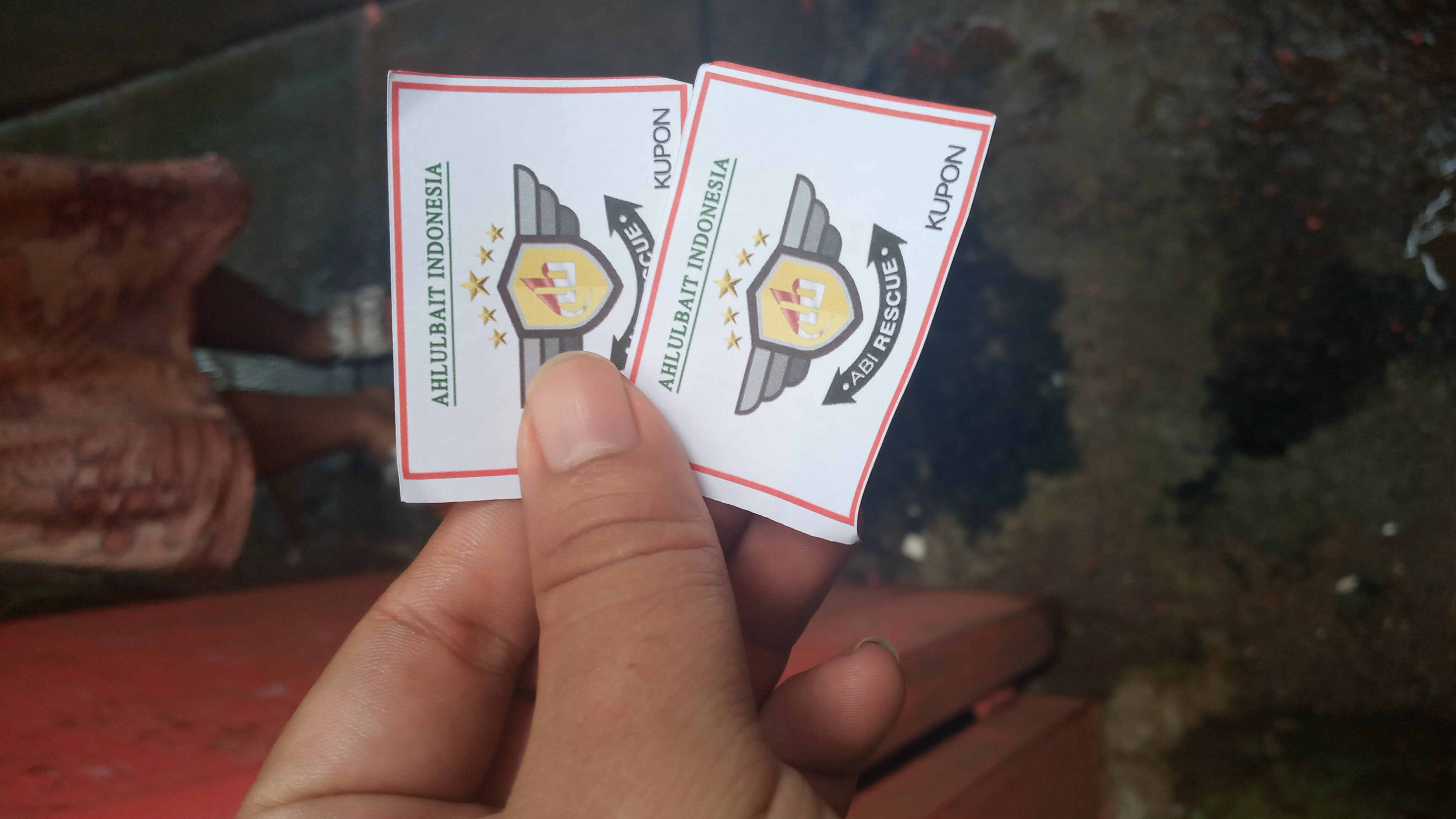 - Tim ABI Rescue saat membagikan kupon ke warga untuk pengambilan paket beras