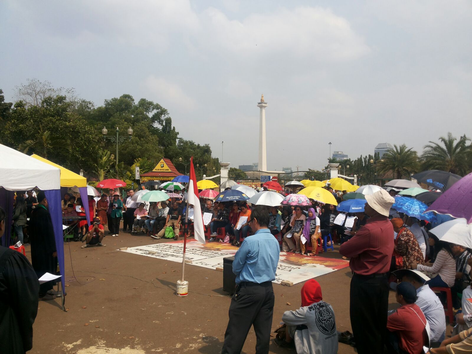 Minggu (27/9), jemaah Gereja Kristen Indonesia (GKI) Yasmin dan Gereja Huria Kristen Batak Protestan (HKBP) Filadelfia menggelar aksi ibadah yang ke 100 di depan Istana Negara dalam rangka menuntut pembukaan segel rumah ibadah mereka dan penghapusan diskriminasi bagi umat Kristiani.