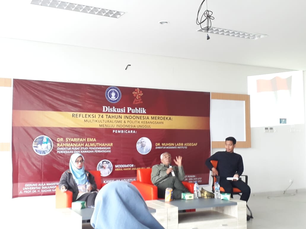 Pontianak – Universitas Tanjungpura Kalimantan Barat adakan diskusi publik dengan mengambil tema Refleksi 74 tahun Indonesia Merdeka: Multikulturalisme dan Politik Kebangsaan Menuju Indonesia Unggul. Acara berlangsung pada pukul 08 – 12 WIB, Kamis 22/8/2019 di aula Magister Ilmu Sosial Universitas Tanjungpura.