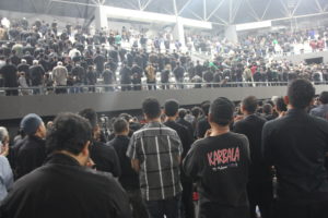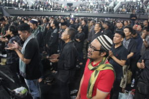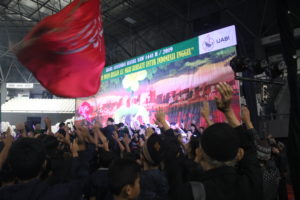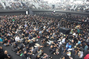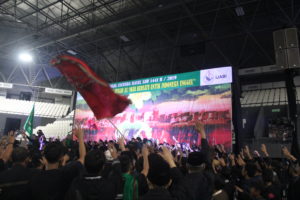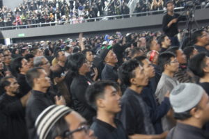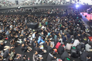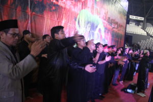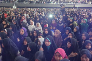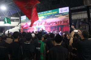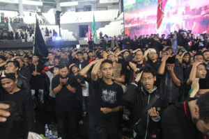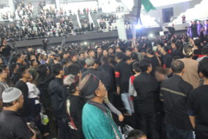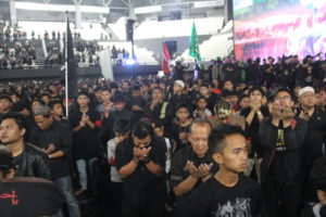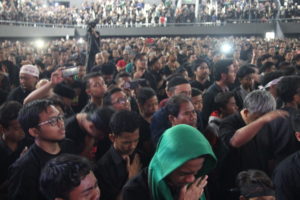 Jakarta, Senin 9/9 – Pengikut Mazhab Ahlulbait berkumpul di stadion Gelora Bung Karno untuk memperingati syahadahnya cucu Nabi Saw tercinta yaitu pemuda penghulu surga Al Imam Husain bin Ali as.  Peringatan dengan tema “Asyura Imam Husain as; NKRI Bersatu Indonesia Unggul” ini dihadiri oleh ribuan jemaah pengikut Ahlulbait. Acara dibuka dengan pembacaan surat Yasin dan tahlil kemudian dilanjutkan dengan memyanyikan lagi Indonesia raya.