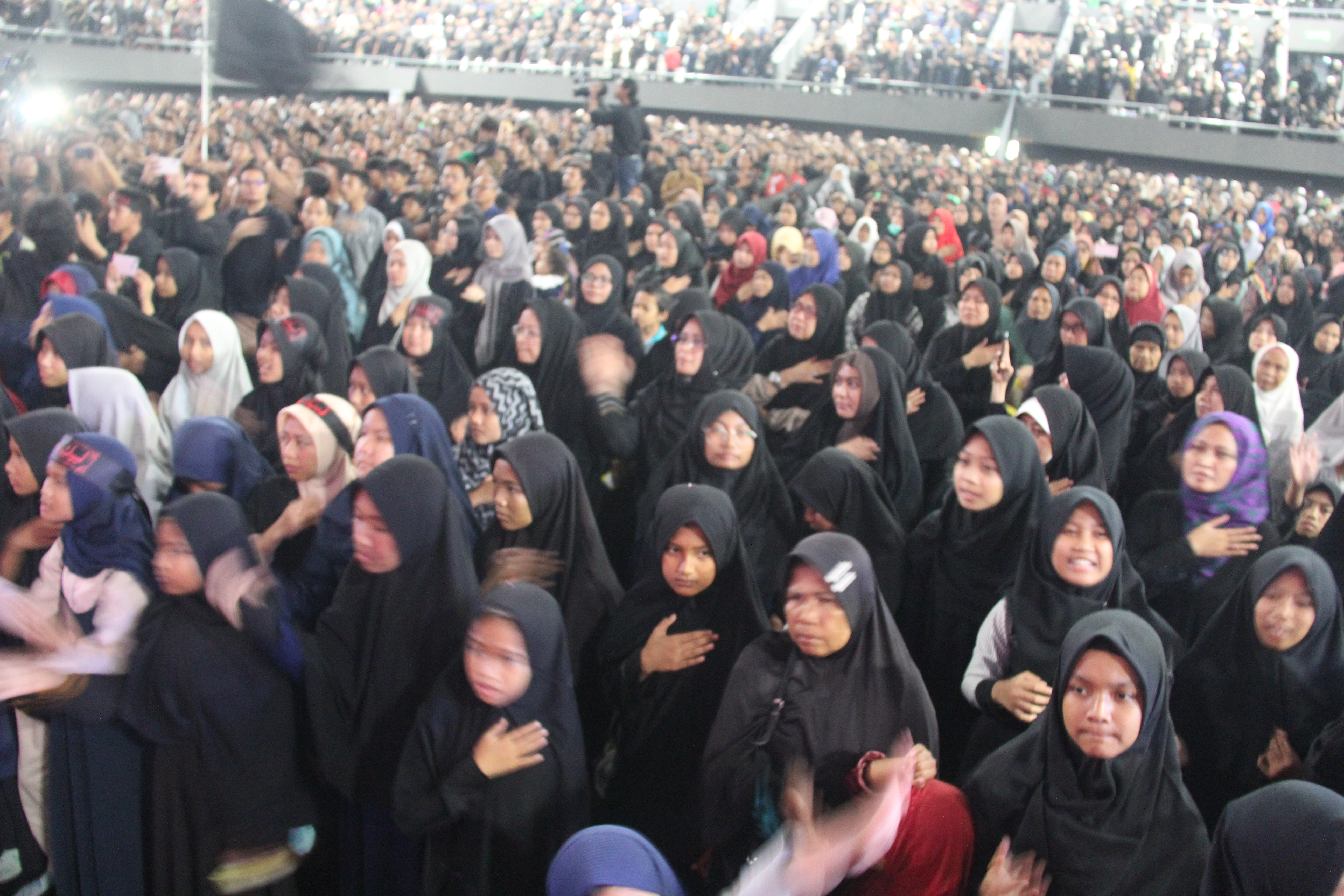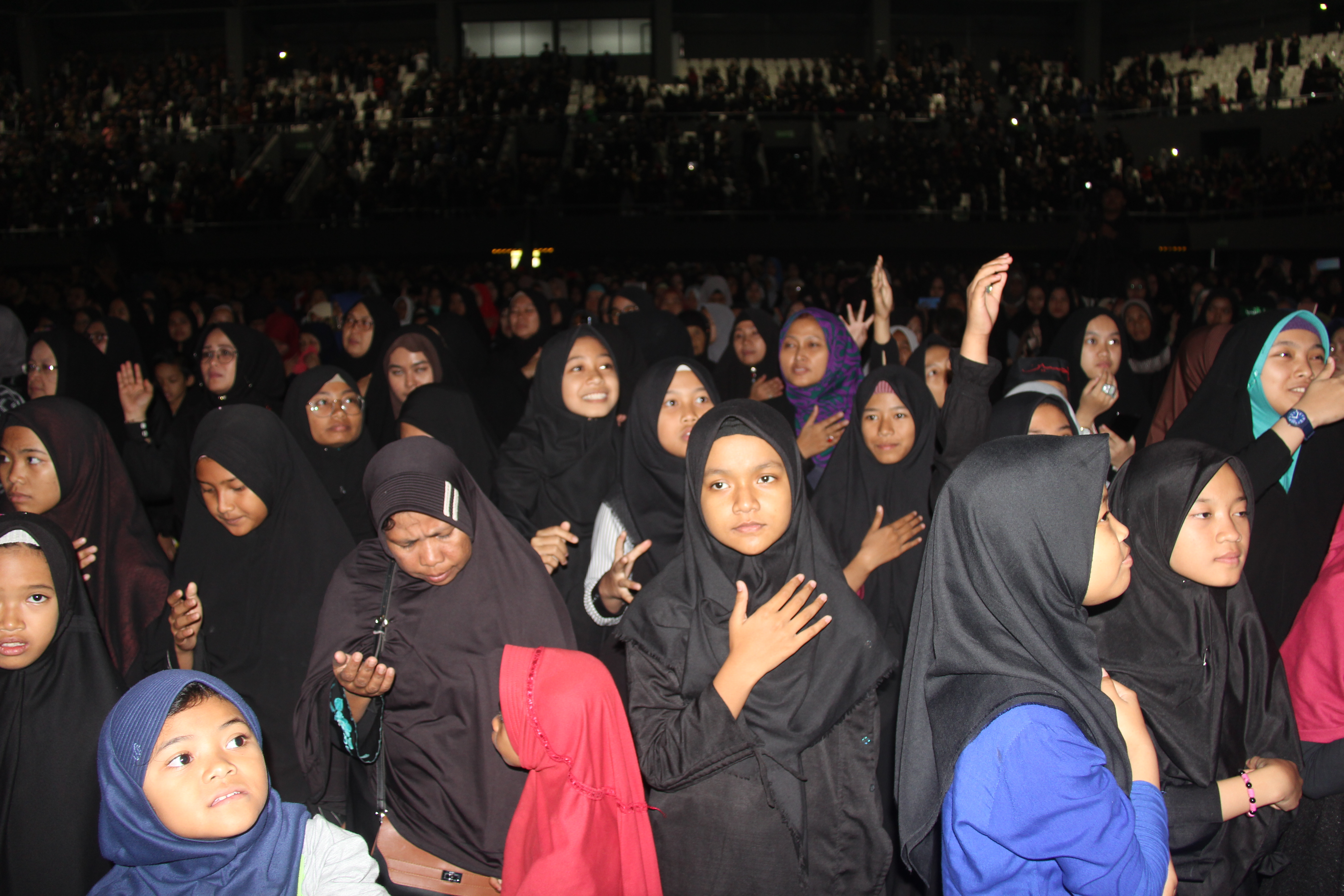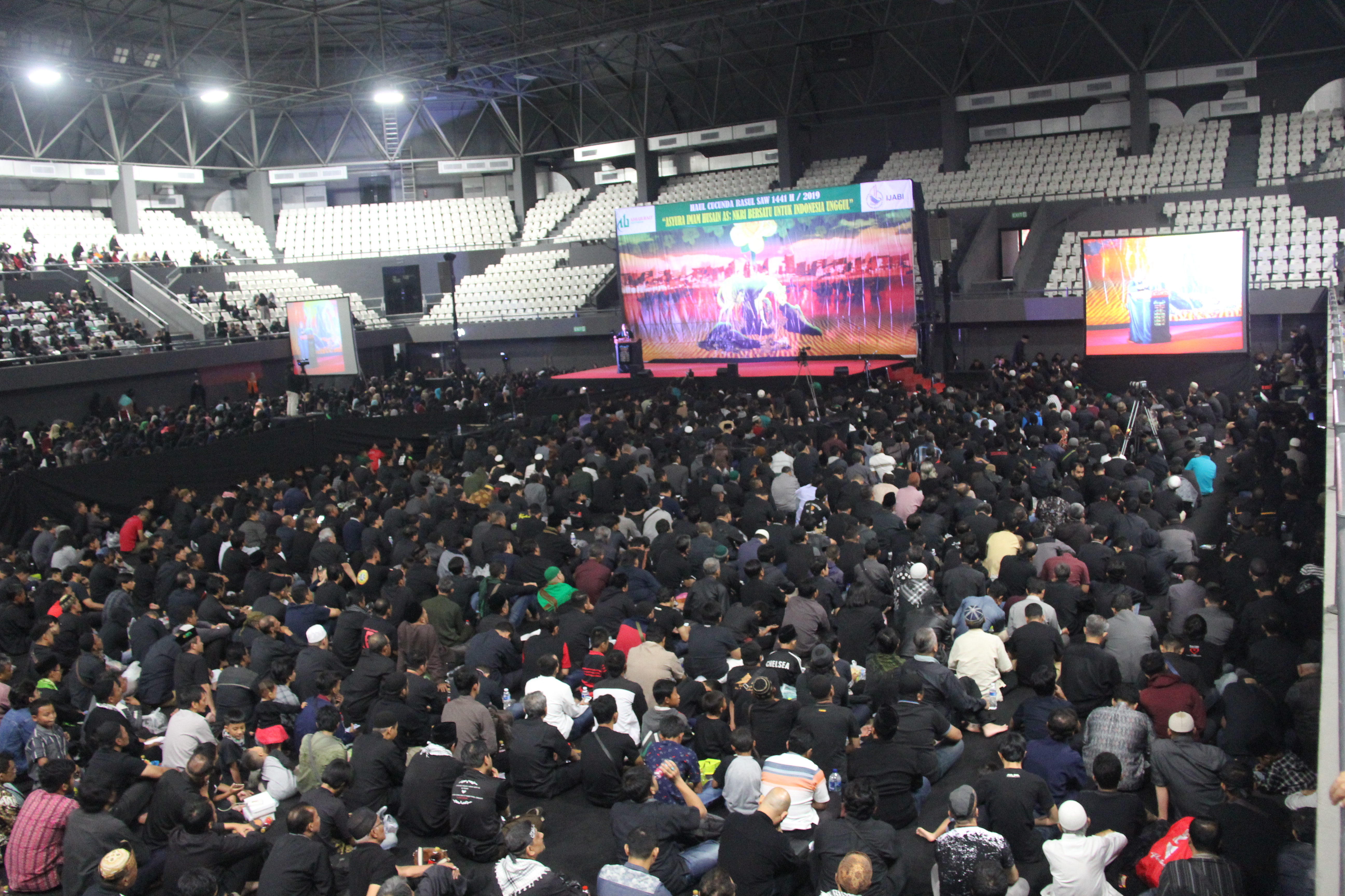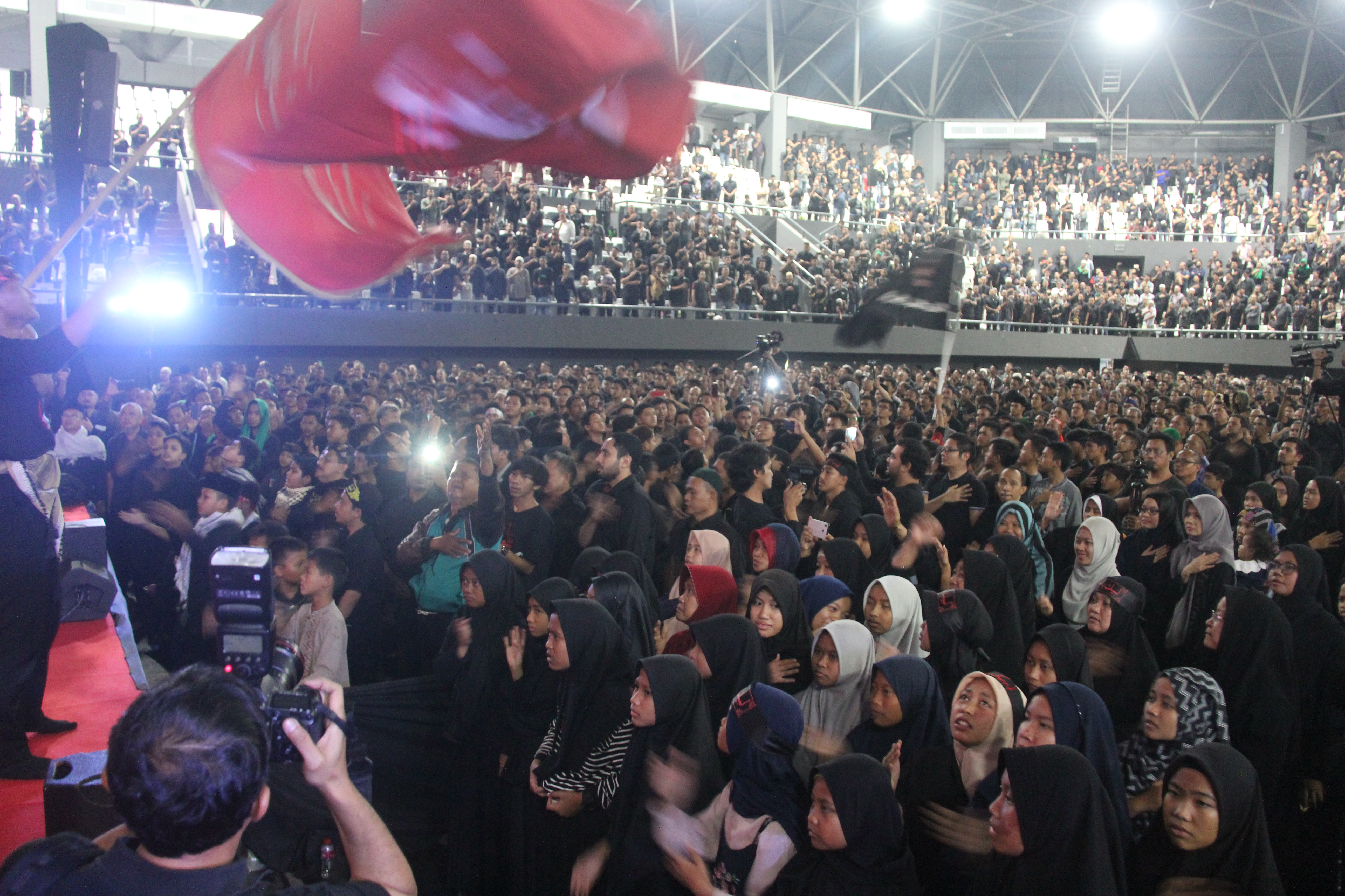 Jakarta, Senin 9/9 – Pengikut Mazhab Ahlulbait berkumpul di stadion Gelora Bung Karno untuk memperingati syahadahnya cucu Nabi Saw tercinta yaitu pemuda penghulu surga Al Imam Husain bin Ali as.  Peringatan dengan tema “Asyura Imam Husain as; NKRI Bersatu Indonesia Unggul” ini dihadiri oleh ribuan jemaah pengikut Ahlulbait. Acara dibuka dengan pembacaan surat Yasin dan tahlil kemudian dilanjutkan dengan memyanyikan lagi Indonesia raya.