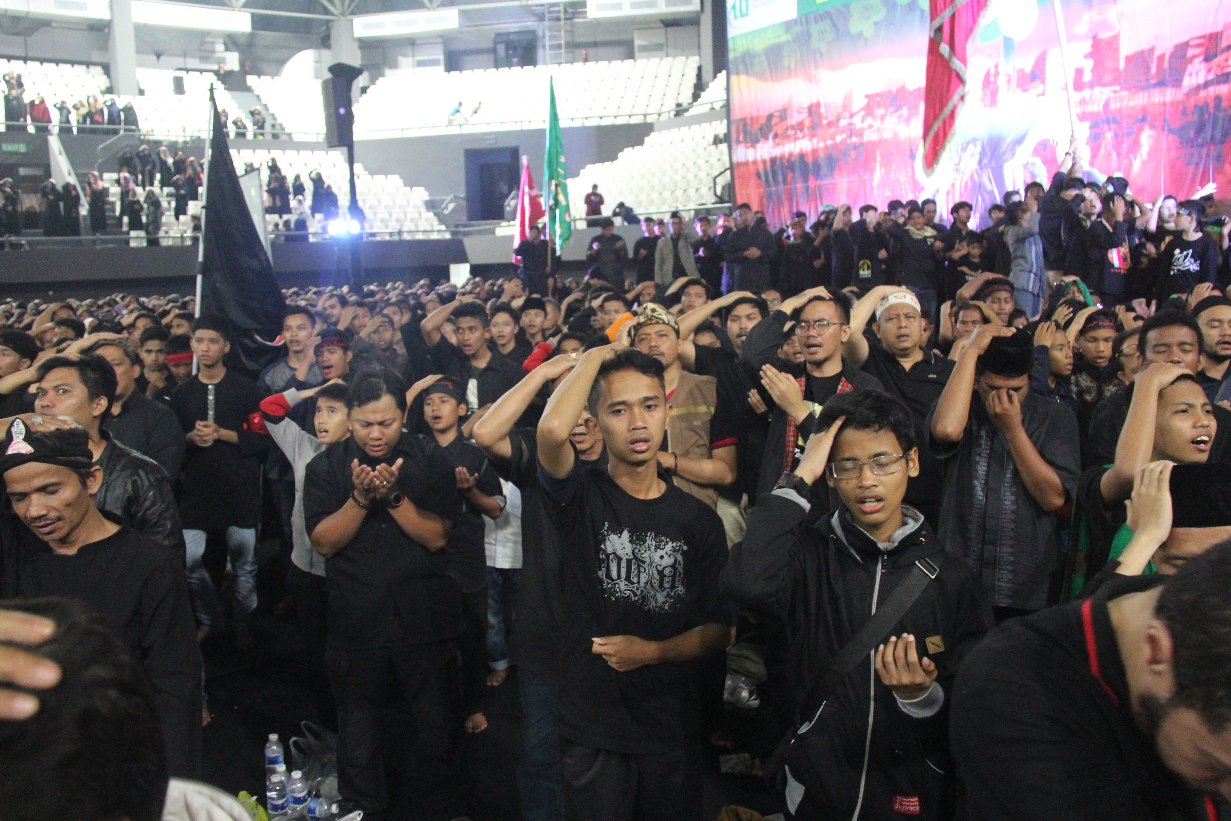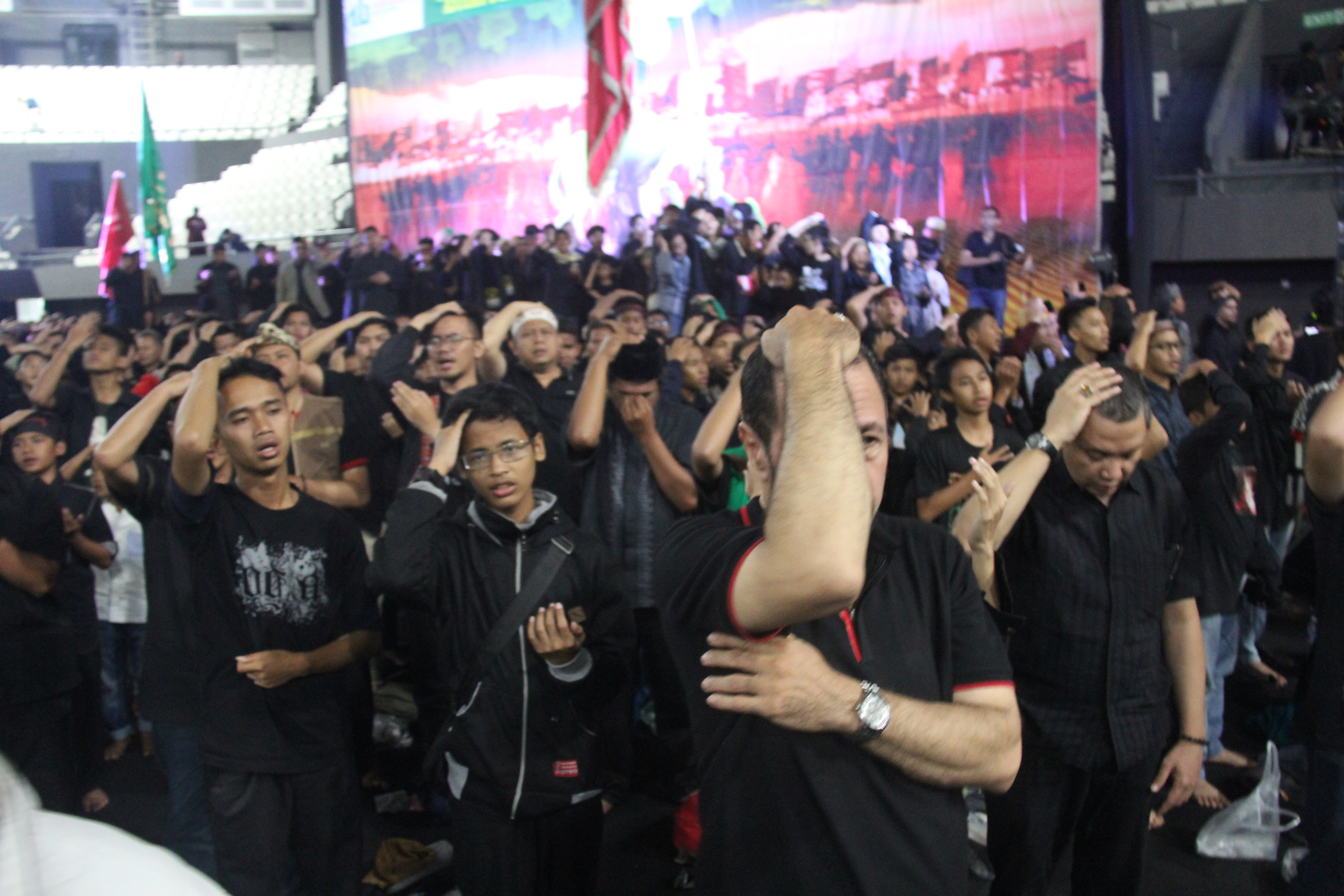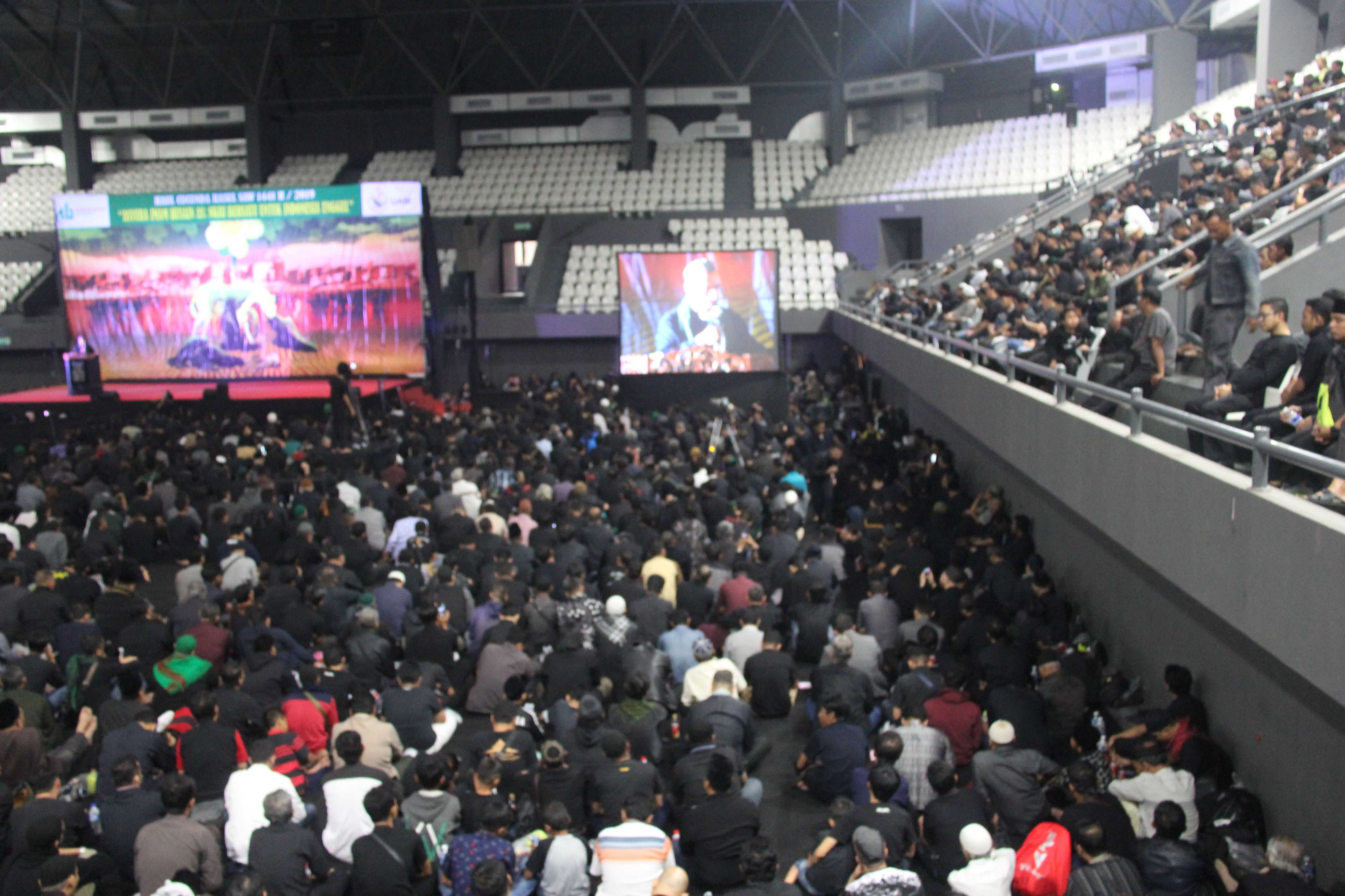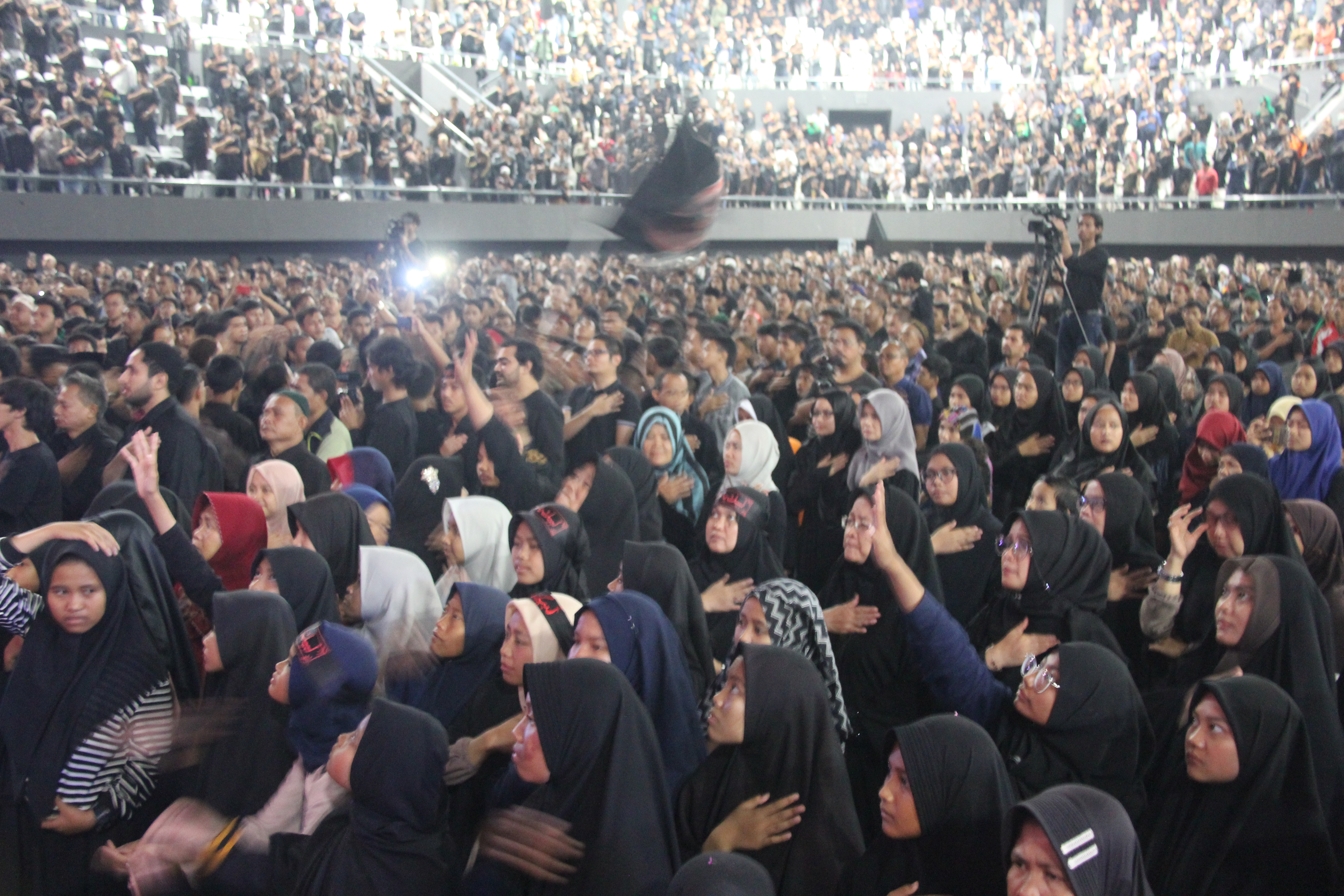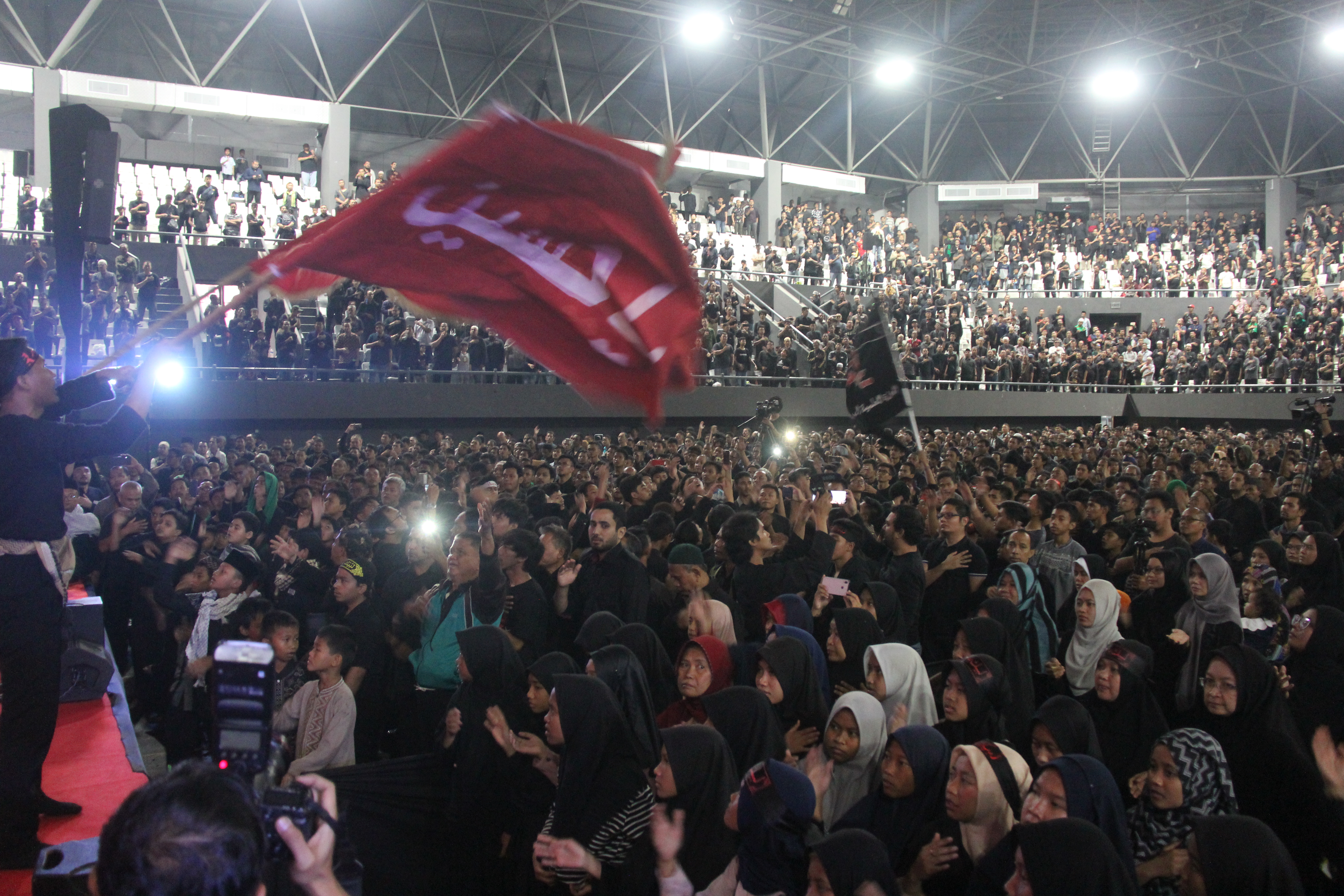 Jakarta, Senin 9/9 – Pengikut Mazhab Ahlulbait berkumpul di stadion Gelora Bung Karno untuk memperingati syahadahnya cucu Nabi Saw tercinta yaitu pemuda penghulu surga Al Imam Husain bin Ali as.  Peringatan dengan tema “Asyura Imam Husain as; NKRI Bersatu Indonesia Unggul” ini dihadiri oleh ribuan jemaah pengikut Ahlulbait. Acara dibuka dengan pembacaan surat Yasin dan tahlil kemudian dilanjutkan dengan memyanyikan lagi Indonesia raya.
