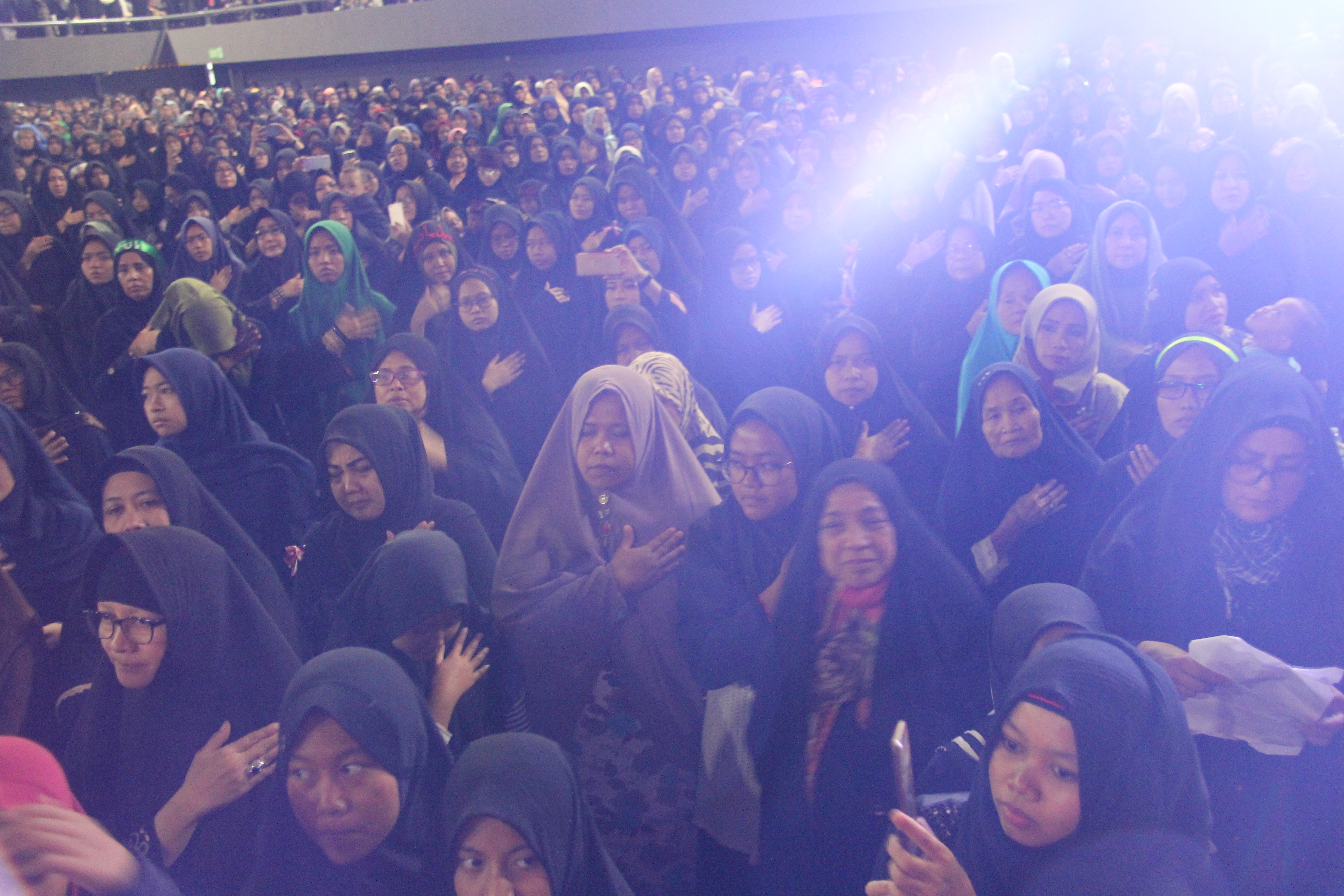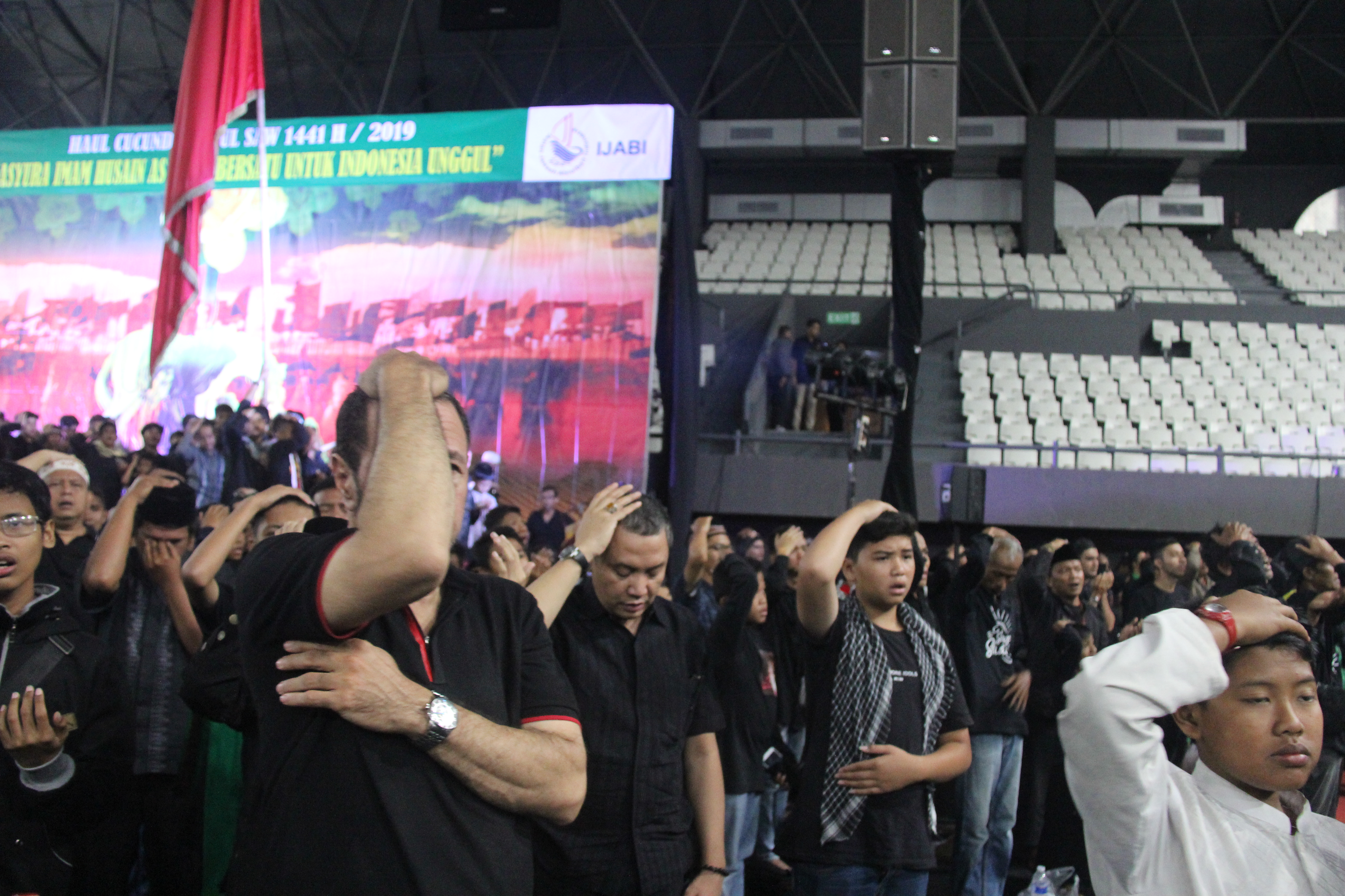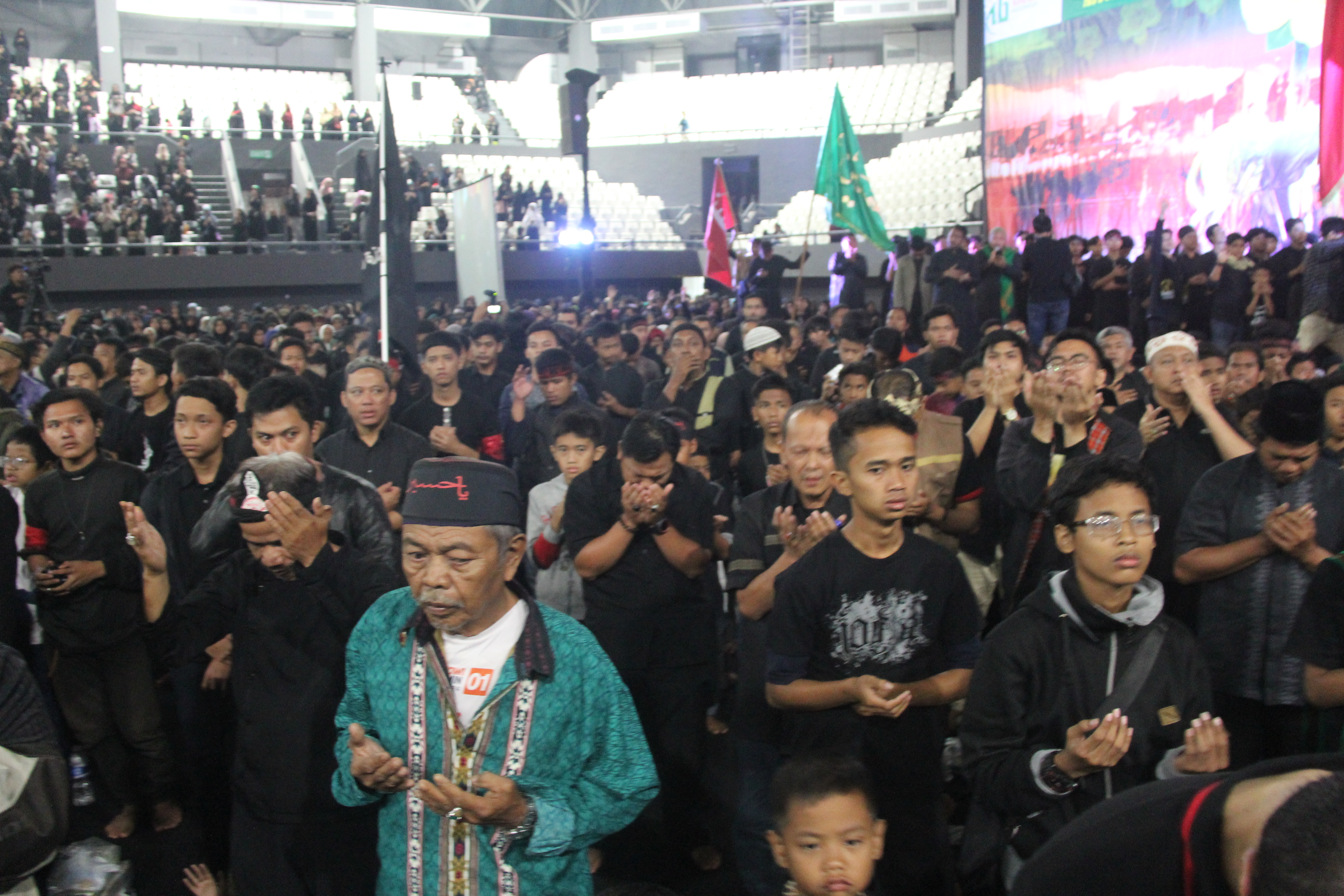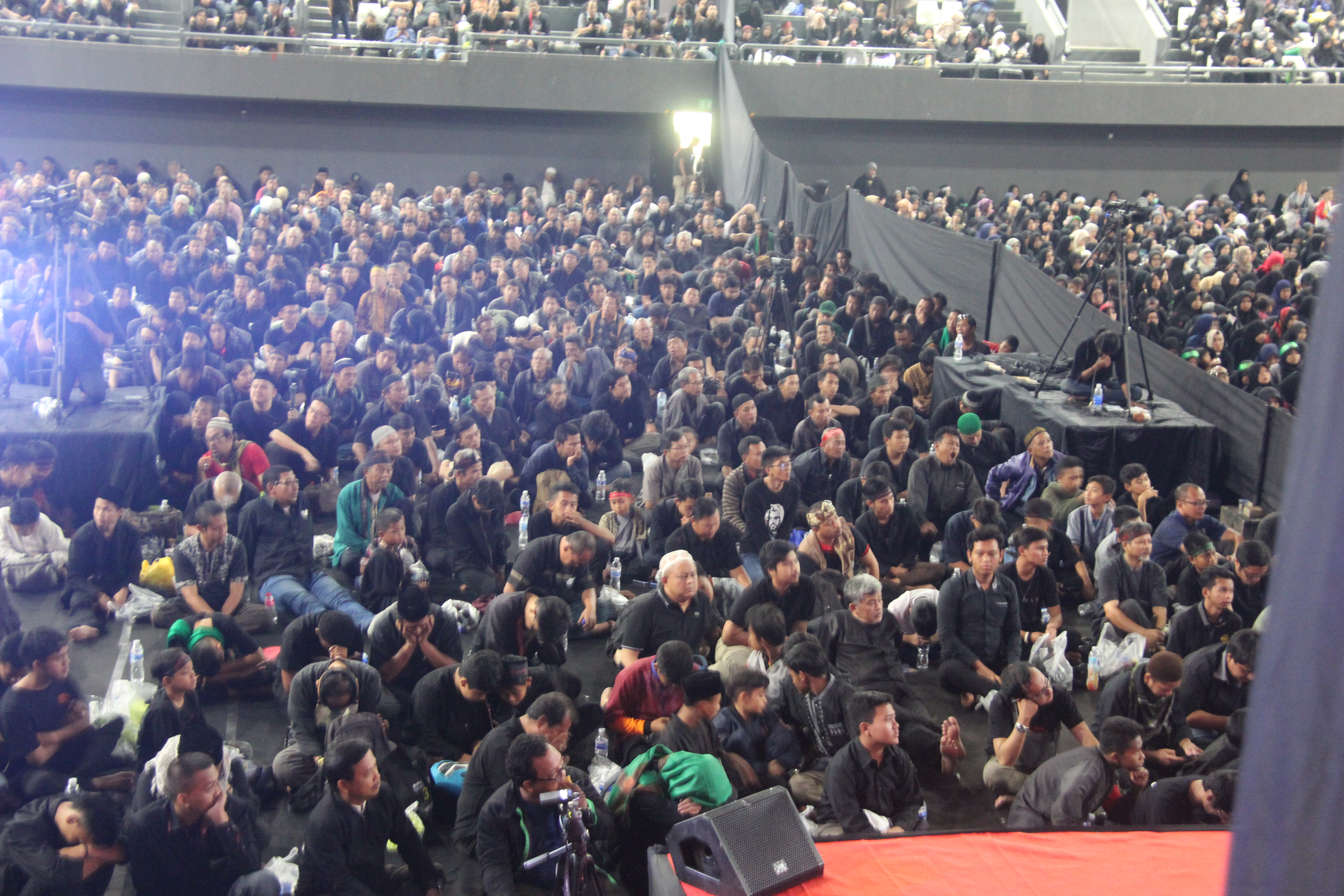 Jakarta, Senin 9/9 – Pengikut Mazhab Ahlulbait berkumpul di stadion Gelora Bung Karno untuk memperingati syahadahnya cucu Nabi Saw tercinta yaitu pemuda penghulu surga Al Imam Husain bin Ali as.  Peringatan dengan tema “Asyura Imam Husain as; NKRI Bersatu Indonesia Unggul” ini dihadiri oleh ribuan jemaah pengikut Ahlulbait. Acara dibuka dengan pembacaan surat Yasin dan tahlil kemudian dilanjutkan dengan memyanyikan lagi Indonesia raya.