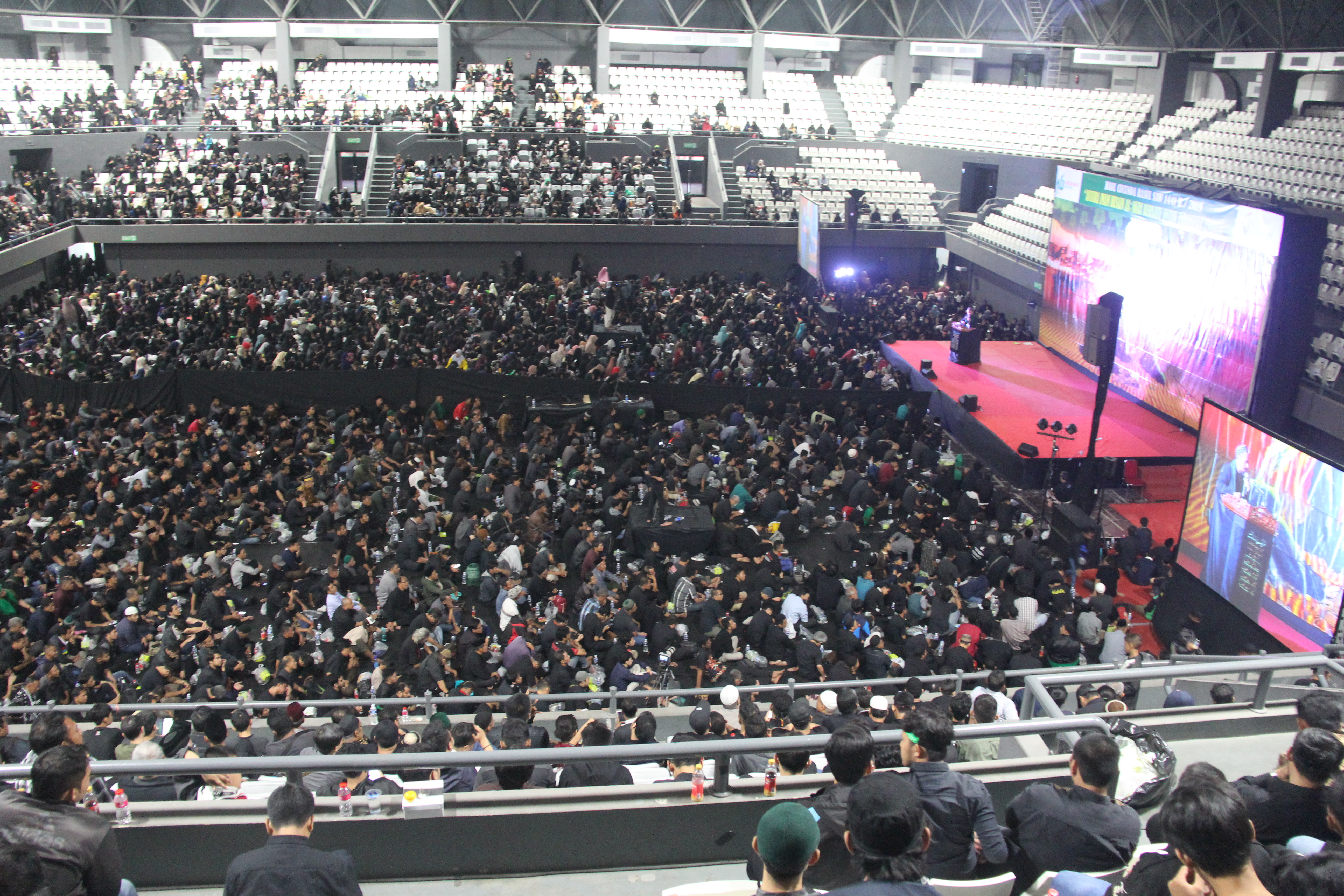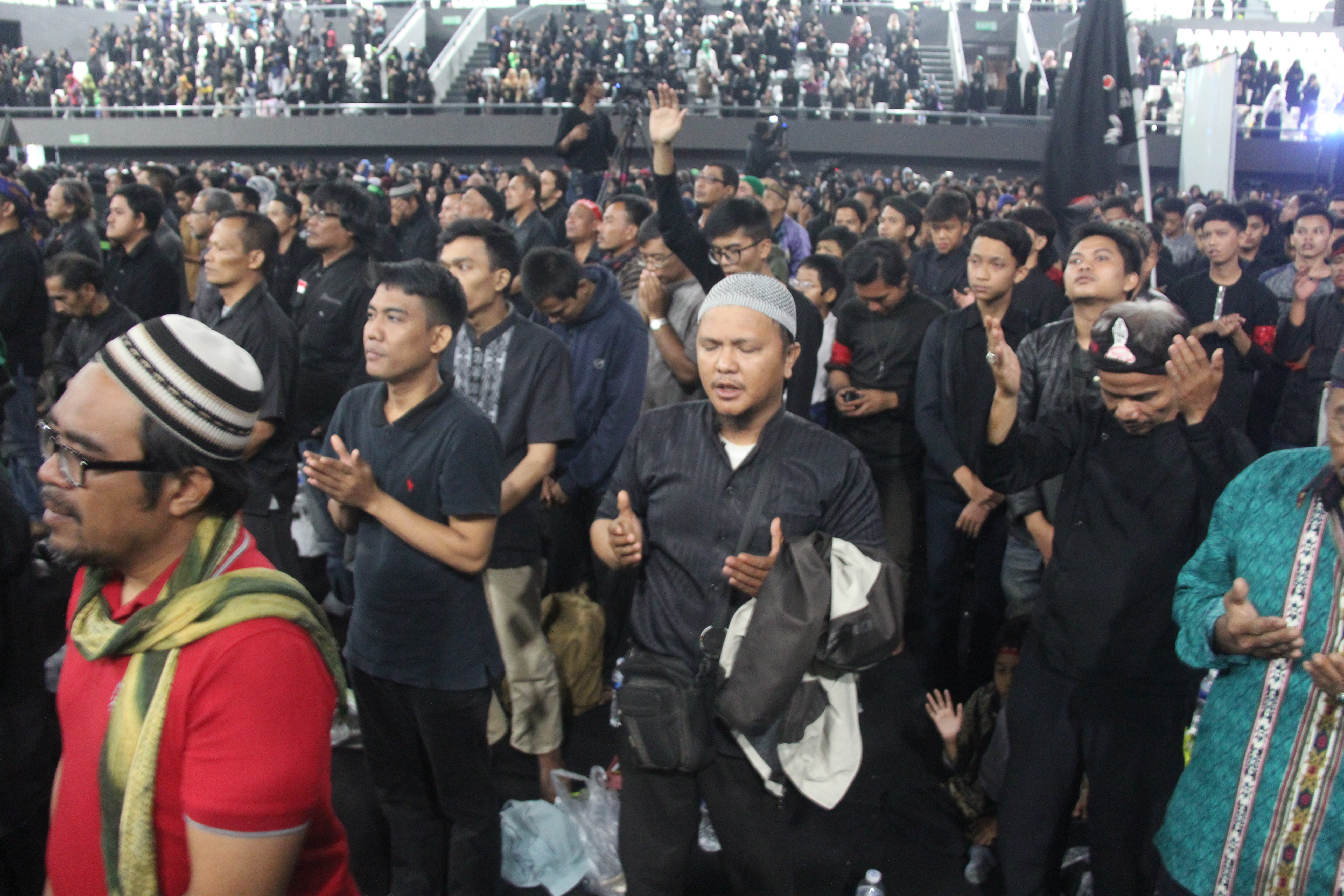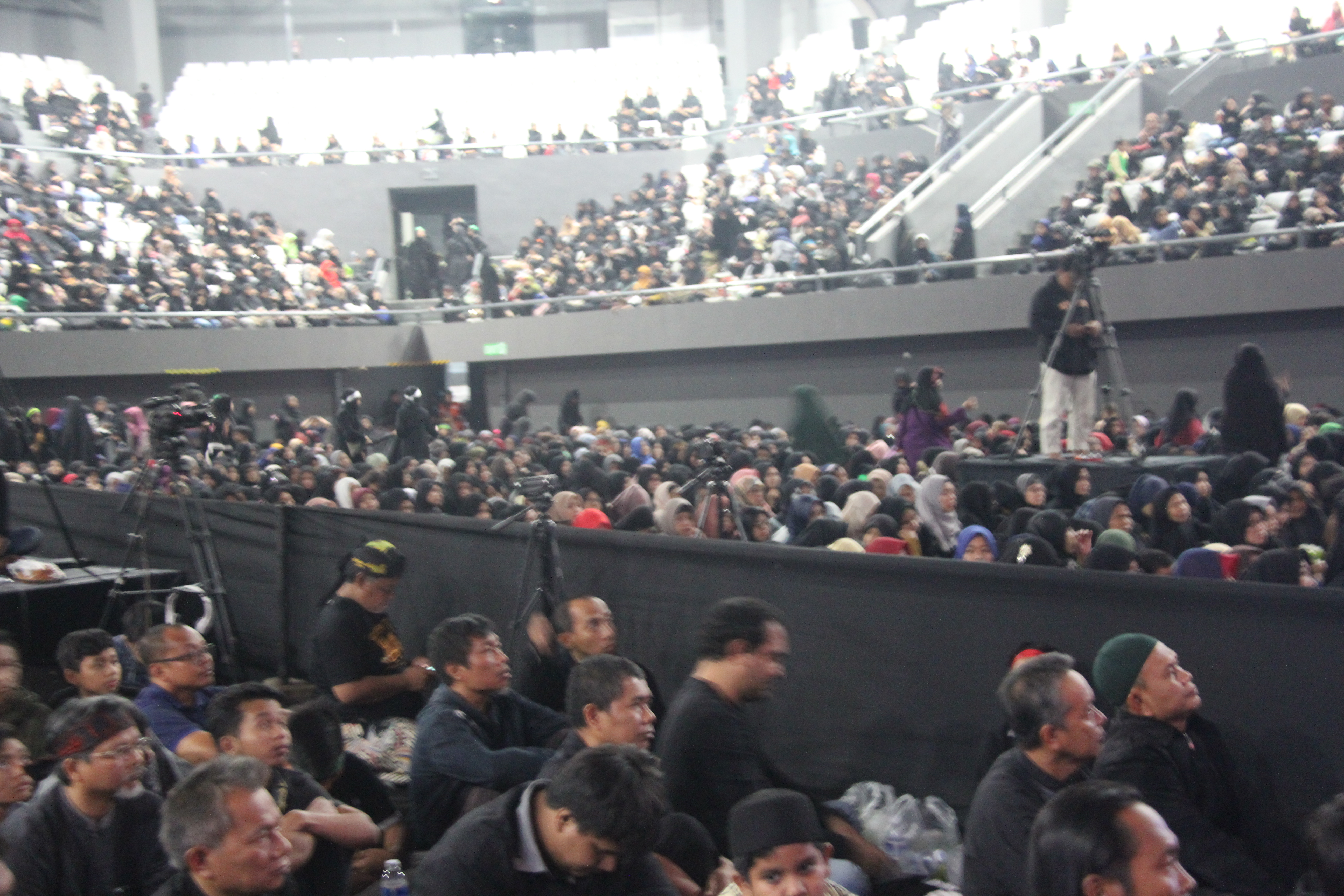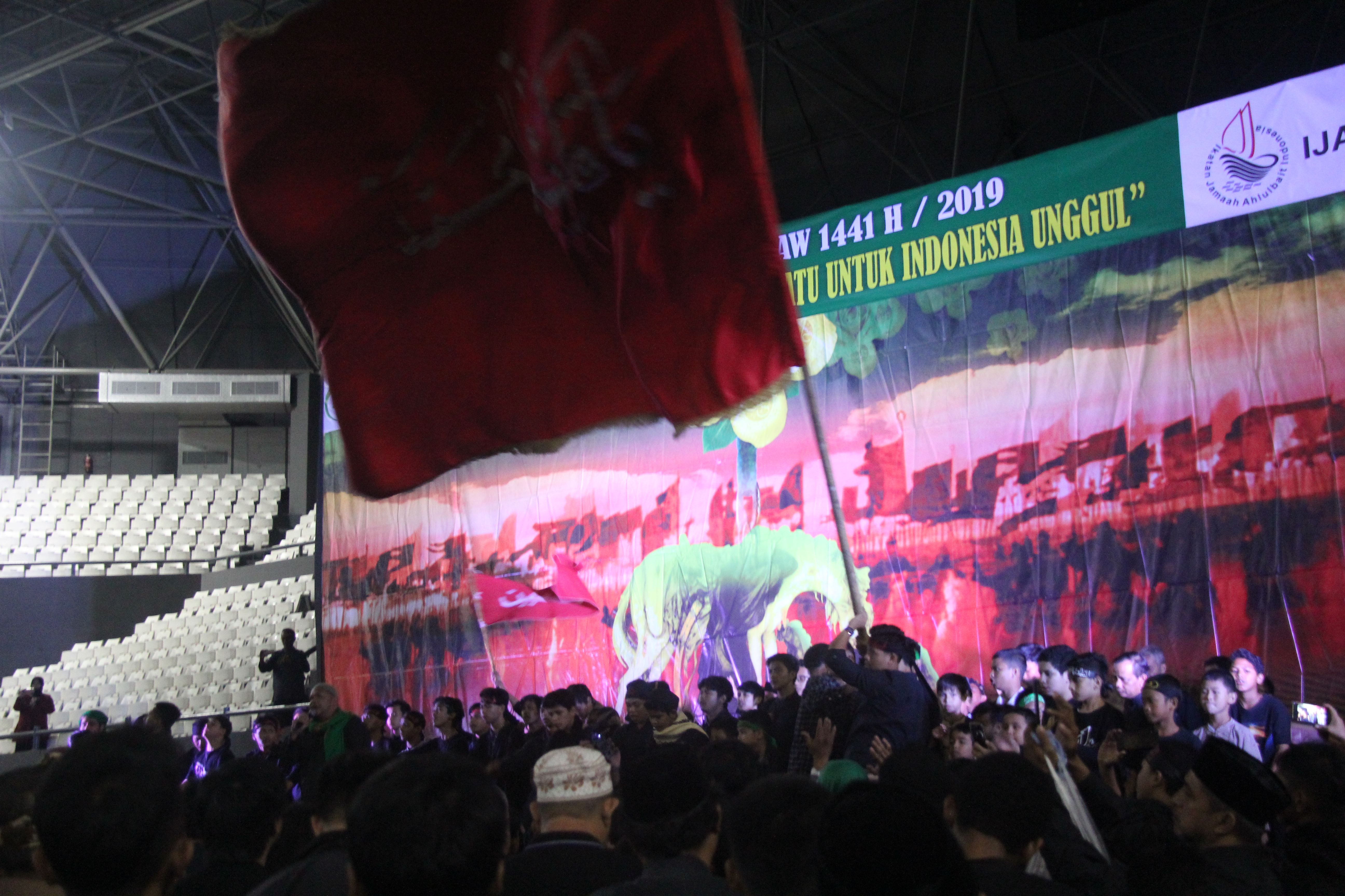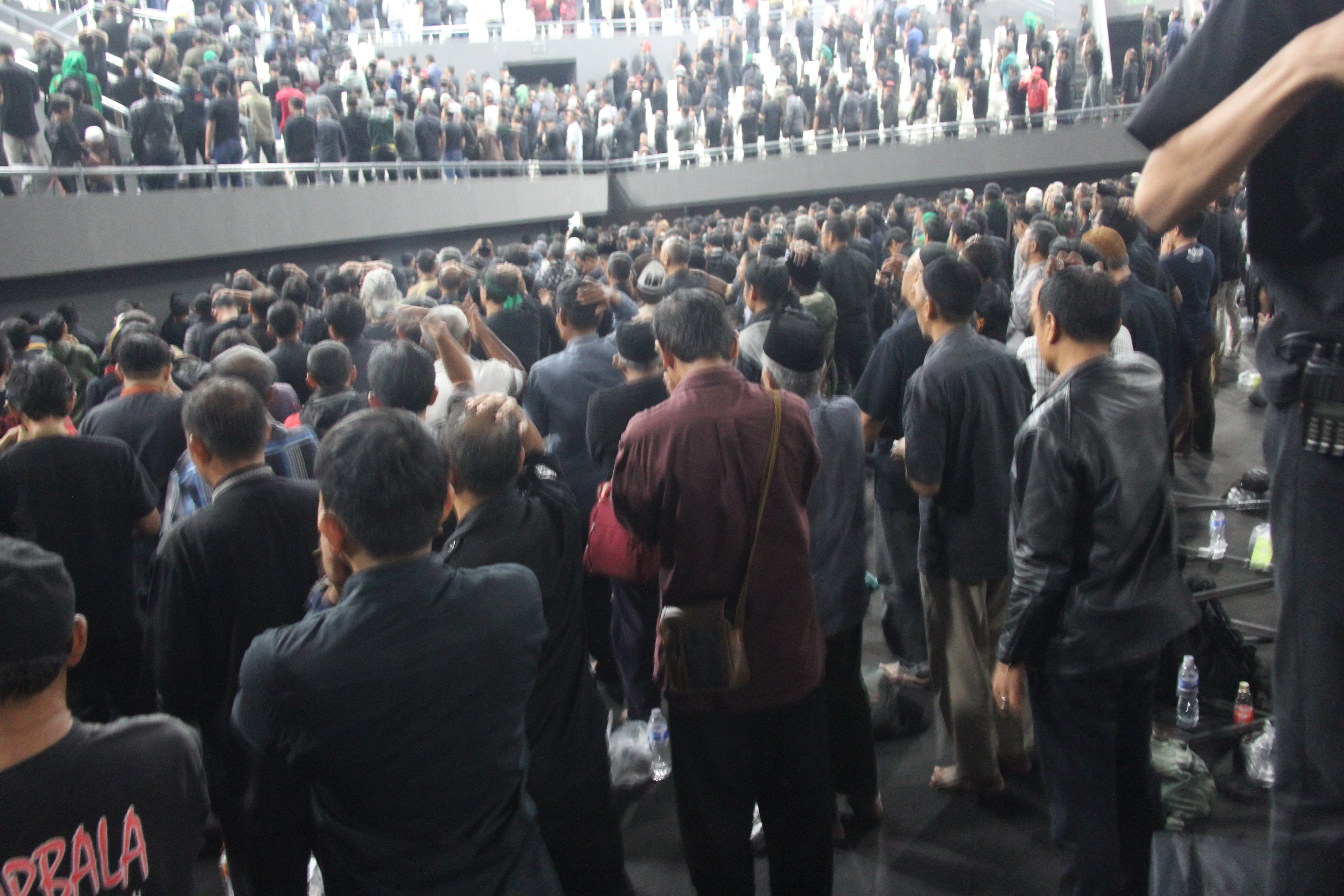 Jakarta, Senin 9/9 – Pengikut Mazhab Ahlulbait berkumpul di stadion Gelora Bung Karno untuk memperingati syahadahnya cucu Nabi Saw tercinta yaitu pemuda penghulu surga Al Imam Husain bin Ali as.  Peringatan dengan tema “Asyura Imam Husain as; NKRI Bersatu Indonesia Unggul” ini dihadiri oleh ribuan jemaah pengikut Ahlulbait. Acara dibuka dengan pembacaan surat Yasin dan tahlil kemudian dilanjutkan dengan memyanyikan lagi Indonesia raya.