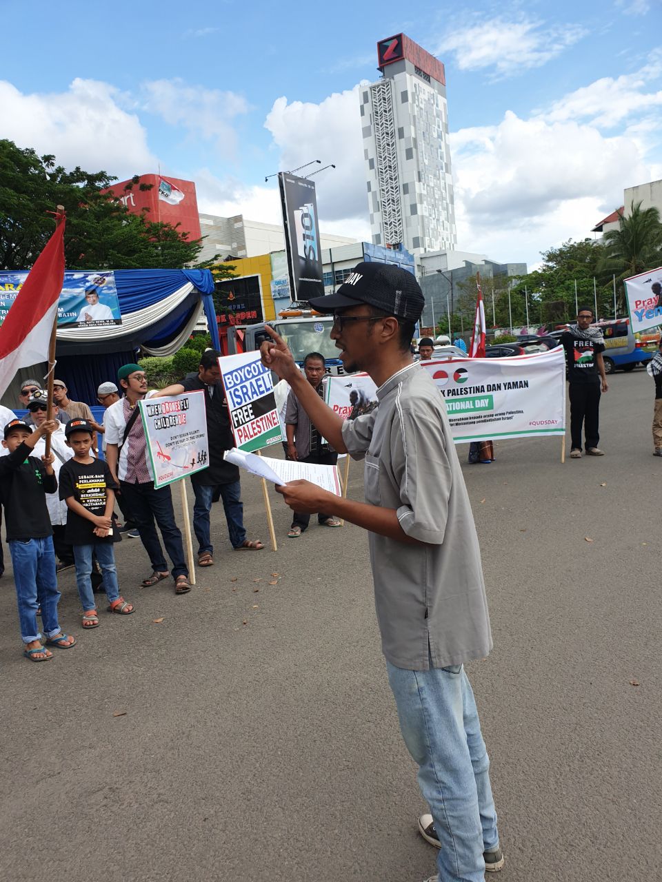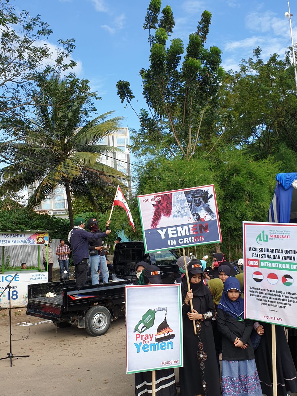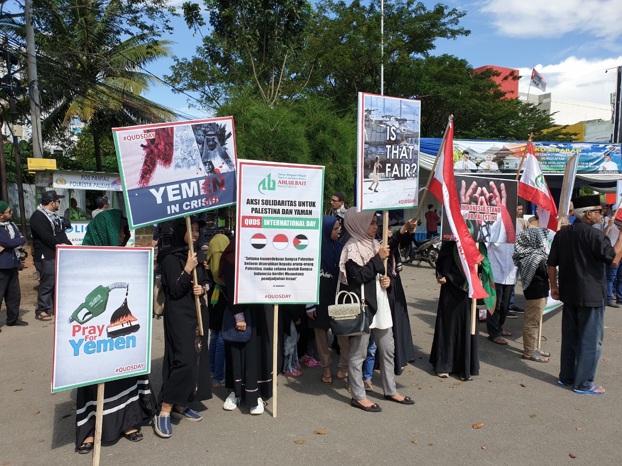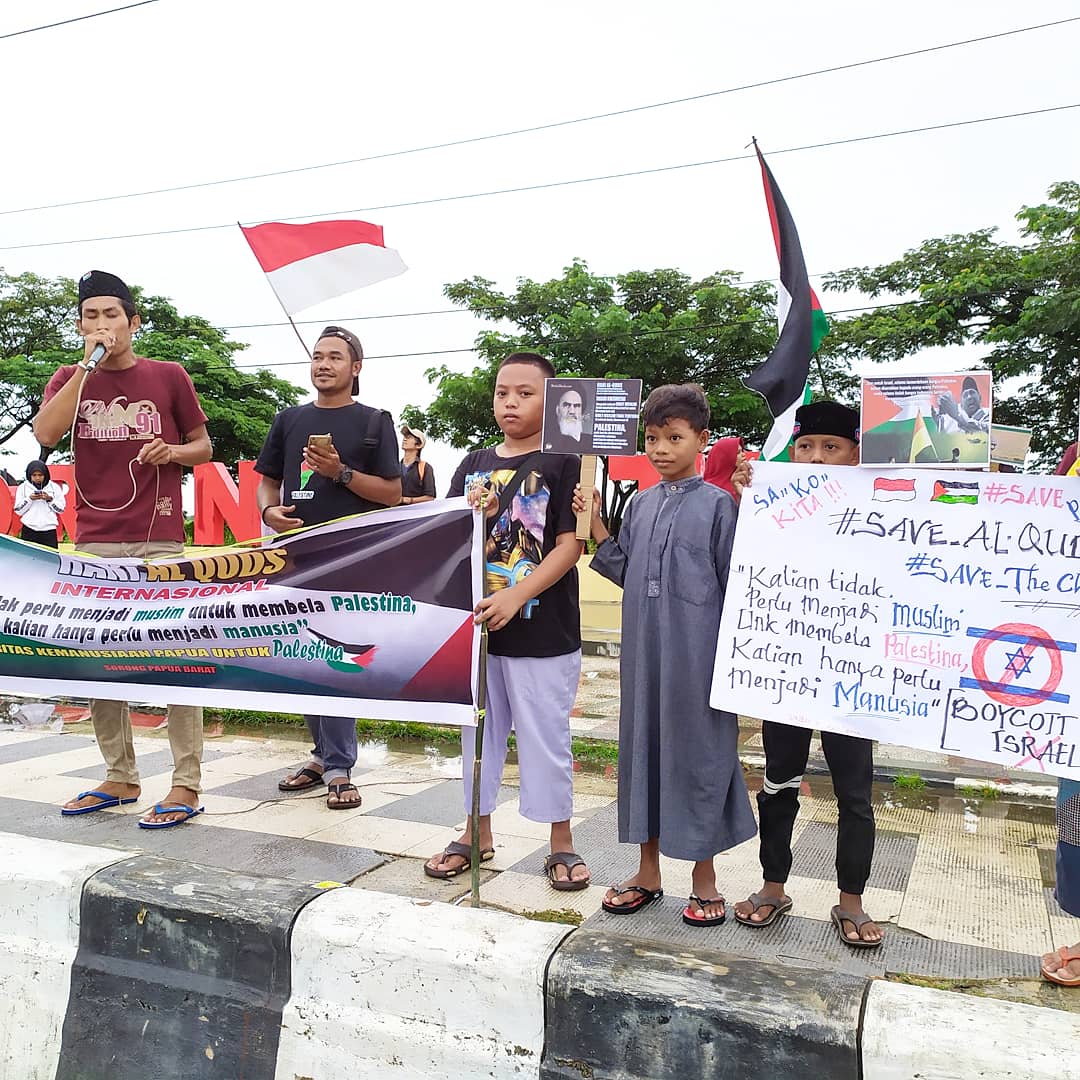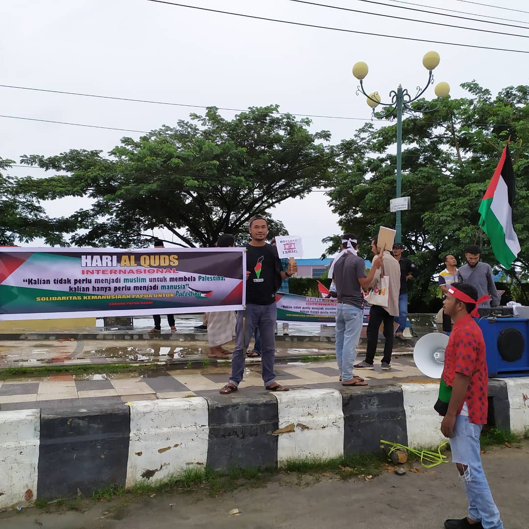 Ratusan orang memperingati Yaumul Quds  di Lampung, Palembang dan Papua Barat yang digelar oleh mereka yang Peduli Palestina pada Jumat (31/05/19). Hari Quds dilakasanakan secara serentak di berbagai penjuru dunia tepat pada hari Jumat terakhir di bulan Ramadan.