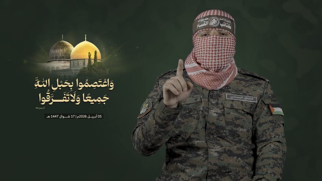Ahlulbait Indonesia | 6 April 2026 — Juru bicara militer Brigade Izzuddin al-Qassam, Abu Ubaidah, memuji serangan balasan Iran dan ketahanan Hizbullah Lebanon, seraya menyerukan mobilisasi lebih luas untuk membela Masjid Al-Aqsa dan para tahanan Palestina di tengah eskalasi konflik kawasan.