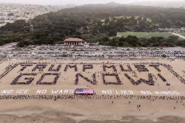 Pantai San Francisco Jadi Lokasi Aksi “Trump Must Go”, Bagian dari Gelombang Protes Nasional