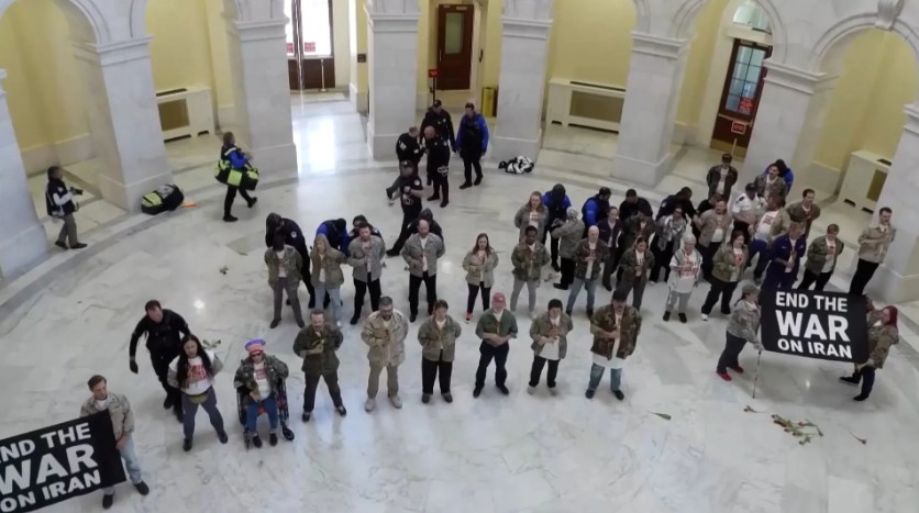 Dokumentasi di lapangan memperlihatkan hal yang sama. Dalam unggahan Greg Stoker di platform X, terlihat para veteran menempati ruang simbolik di dalam Kongres sebagai bentuk penolakan terbuka terhadap kebijakan perang. Ini bukan hanya aksi. Ini adalah pesan institusional.