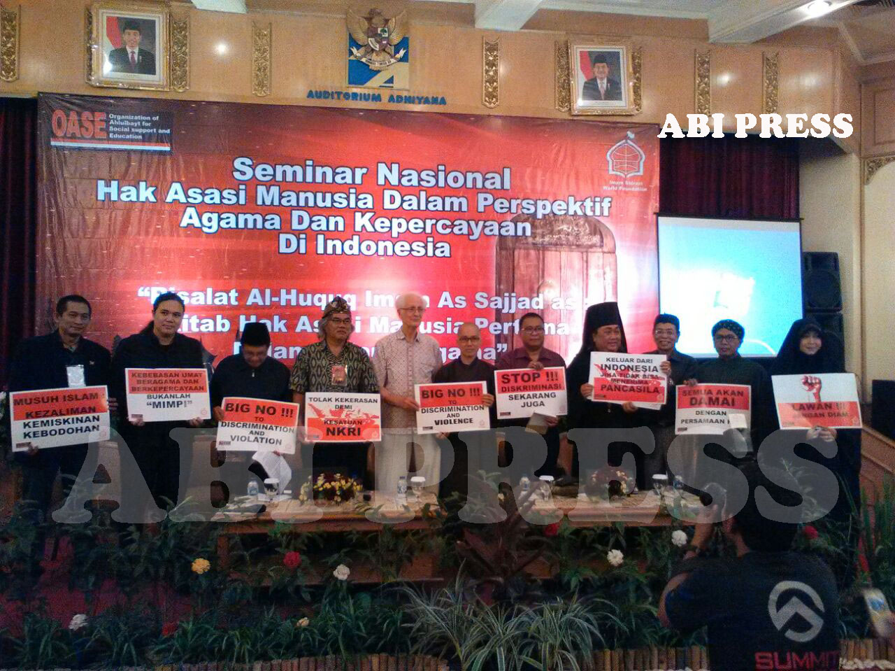 Organization of Ahlulbayt for Social Support and Education (OASE) dalam sebuah seminar (25/3) yang diselenggarakannya, menghadirkan tokoh-tokoh agama dan kepercayaan membahas duduk perkara HAM ini. Berlokasi di Wisma Antara Jakarta, seminar itu diberi tema “Hak Asasi Manusia dalam Perspektif Agama dan Kepercayaan di Indonesia.”