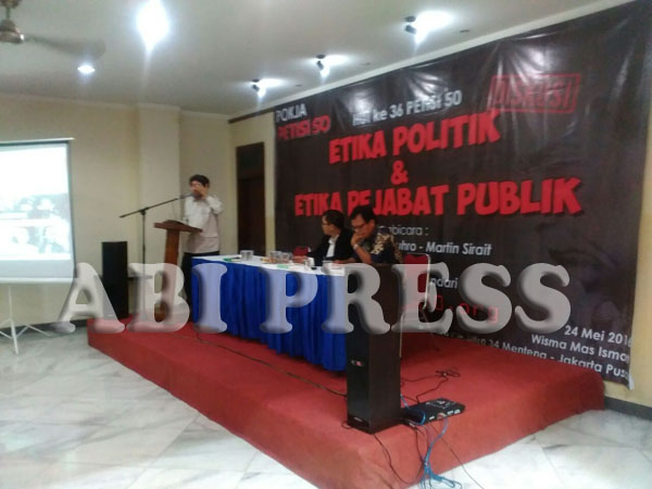 Hal ini diungkapkan dalam diskusi Etika Politik dan Etika Pejabat Publik yang diadakan oleh PETISI 50 di Menteng, Selasa (24/5).