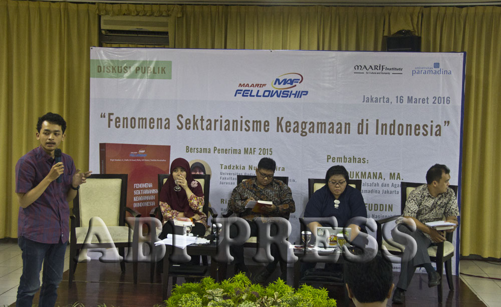 Hal ini mendapat perhatian salah seorang pemenang program Maarif Fellowship 2015, Rizky Alif Alvian, Mahasiswa Fakultas Ilmu Sosial dan Ilmu Politik, Jurusan Hubungan Internasional Universitas Gajah Mada, yang menjadi salah satu pembicara dalam diskusi publik bertema “Fenomena Sektarianisme Keagamaan di Indonesia” yang dilaksanakan di Universitas Paramadina, Jakarta Selatan, Rabu (16/3).