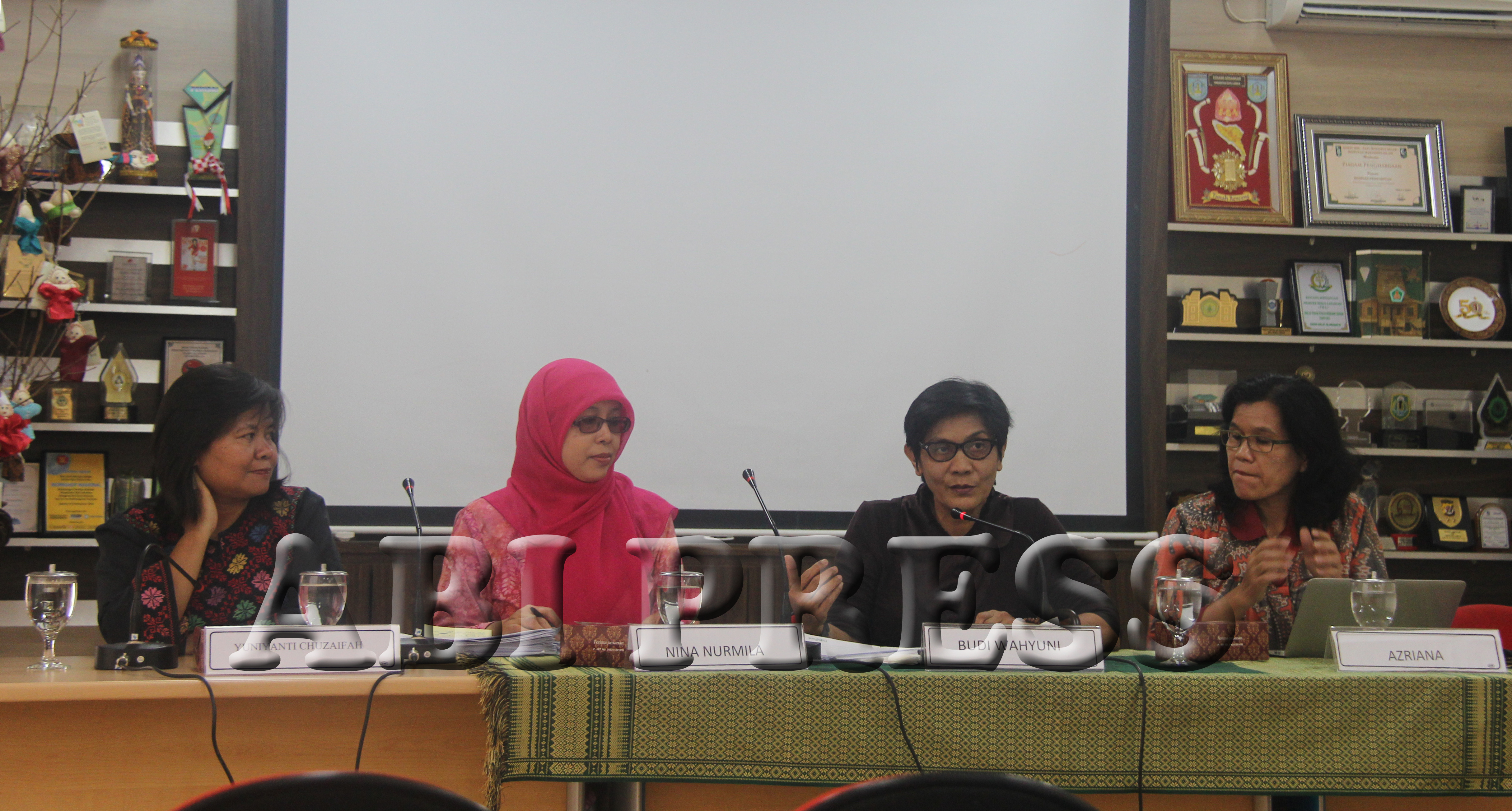 Siaran Pers yang berlangsung kurang lebih satu jam dan ditutup pukul 12 siang itu dihadiri oleh Azriana, Ketua Komnas Perempuan, Budi Wahyuni, Wakil Ketua, Tuniyanti Chuzaifah, Wakil Ketua dan Nina Nurmila, Pejabat Sementara Gugus Kerja Perempuan dalam Konstitusi Hukum Nasional. (Lutfi/Yudhi)
