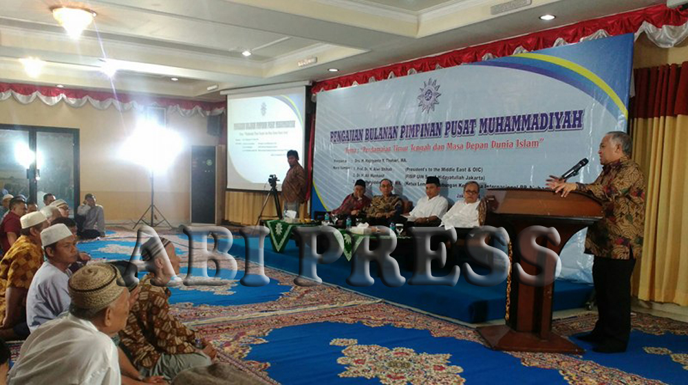 Pimpinan Pusat Muhammadiyah Dr. H. Hajriyanto Y. Thohari, MA dalam Pengajian Bulanan Pimpinan Pusat Muhammadiyah yang mengangkat tema Perdamaian Timur Tengah dan Masa Depan Dunia Islam di kantor PP Muhammadiyah, Jakarta, Jumat (4/3) mengingatkan bahaya proxy-war ini.