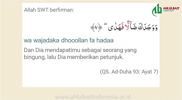 2) Berdasarkan konteks ayat sebelumnya yang menggambarkan masa kecil sebagai bocah yatim, maka kesesatan dalam ayat ini hanya bermakna tersesat di jalan saat ikut dalam kafilah pamannya, Abu Talib dalam perjalanan ke Syam.