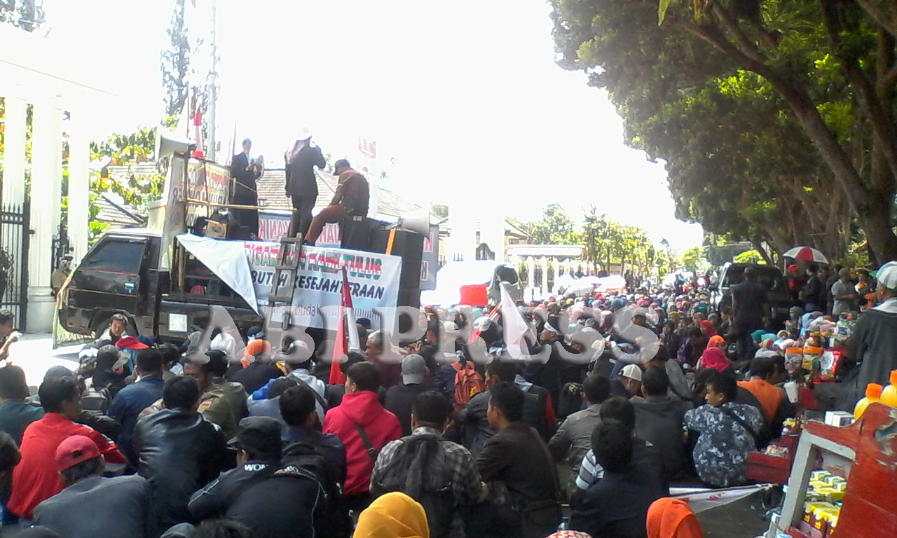 Demo yang mendapat pengawalan ketat dari jajaran Polres Wonosobo itu berlangsung aman dan tertib, dengan beberapa orang tampak berorasi menyampaikan tuntutan mereka.