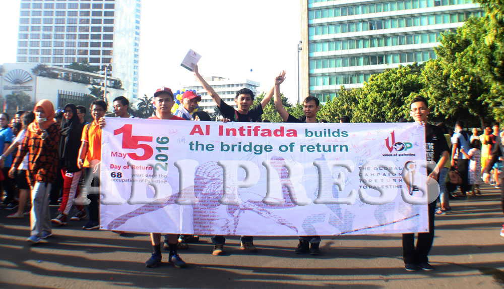 Seperti hari-hari Minggu biasanya, Car Free Day (CFD) Jakarta selalu diramaikan dengan berbagai hal, bukan hanya mereka yang menikmati hari tanpa kendaraan dengan berjalan kaki, bersepeda, berlari atau melakukan kampanye sosial kepada warga yang lalu lalang. Namun, ada yang beda dengan CFD Minggu ini (15/5).Dari pantauan Tim ABI Press di lokasi, tepat di sisi Barat Bundaran Hotel Indonesia, sejumlah massa dari Voice Of Palestina (VOP) sedang membentangkan spanduk untuk aksi tanda tangan bagi mereka yang memberikan solidaritasnya untuk rakyat Palestina. Menurut koordinator aksi, Muhammad Sahid, aksi itu adalah bentuk dukungan kepada rakyat Palestina di Hari Nakbah.