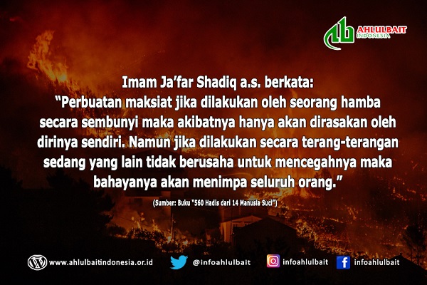Imam Ja’far Shadiq a.s. berkata: “Perbuatan maksiat jika dilakukan oleh seorang hamba secara sembunyi maka akibatnya hanya akan dirasakan oleh dirinya sendiri. Namun jika dilakukan secara...