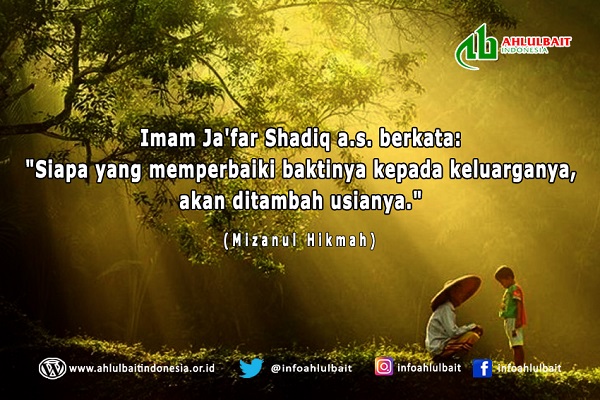 Imam Ja’far Shadiq a.s. berkata: “Siapa yang memperbaiki baktinya kepada keluarganya, akan ditambah usianya.” (Mizanul Hikmah)