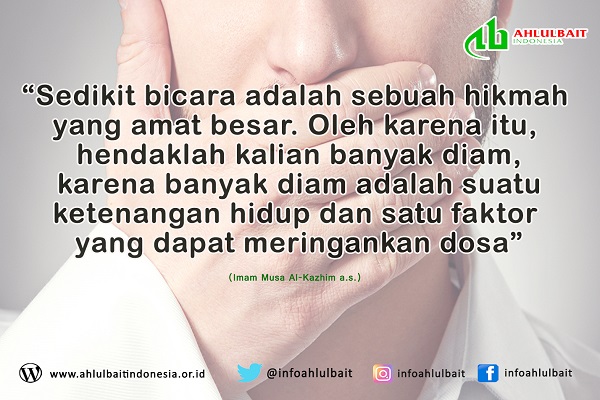 Imam Musa Al-Kazhim berkata: Sedikit bicara adalah sebuah hikmah yang amat besar. Oleh karena itu, hendaklah kalian banyak diam, karena banyak diam adalah suatu ketenangan hidup...