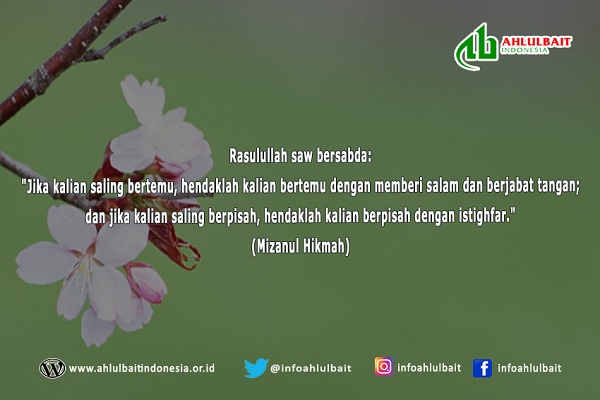 Rasulullah saw bersabda: “Jika kalian saling bertemu, hendaklah kalian bertemu dengan memberi salam dan berjabat tangan; dan jika kalian saling berpisah, hendaklah kalian berpisah dengan istighfar.”...