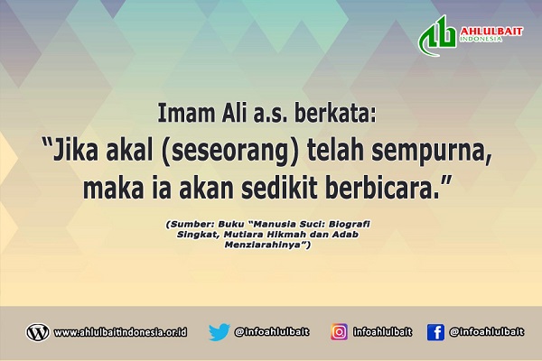Imam Ali a.s. berkata: “Jika akal (seseorang) telah sempurna, maka ia akan sedikit berbicara.” (Sumber: Buku “Manusia Suci: Biografi Singkat, Mutiara Hikmah dan Adab Menziarahinya)