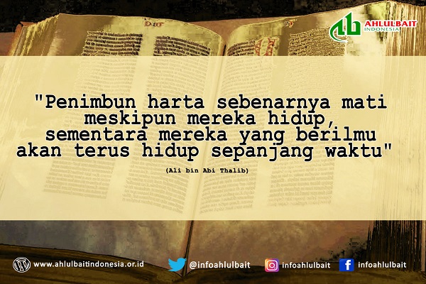 “Penimbun harta sebenarnya mati meskipun mereka hidup, sementara mereka yang berilmu akan terus hidup sepanjang waktu.” (Imam Ali bin Abi Thalib)