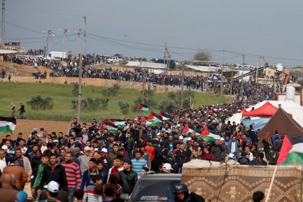 Belasan warga Palestina syahid dan ribuan lain terluka akibat serangan militer yang dilancarkan tentara Israel menyambut Pawai Akbar warga Palestina, (30/3/18). Aksi Pawai diikuti puluhan ribu...