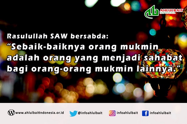 Rasulullah SAW bersabda: “Sebaik-baiknya orang Mukmin adalah orang yang menjadi sahabat bagi orang-orang Mukmin lainnya”