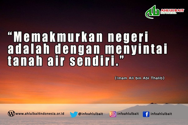 Imam Ali as Berkata: “Memakmurkan negeri adalah dengan menyintai tanah air sendiri.”