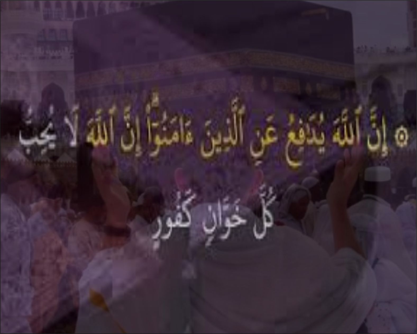 إِنَّ ٱللَّهَ يُدَٰفِعُ عَنِ ٱلَّذِينَ ءَامَنُوٓا۟ ۗ إِنَّ ٱللَّهَ لَا يُحِبُّ كُلَّ خَوَّانٍ كَفُورٍ Sesungguhnya Allah membela orang-orang yang telah beriman. Sesungguhnya Allah tidak menyukai...