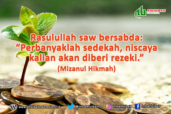 Rasulullah saw bersabda: “Perbanyaklah sedekah, niscaya kalian akan diberi rezeki.” (Mizanul Hikmah)