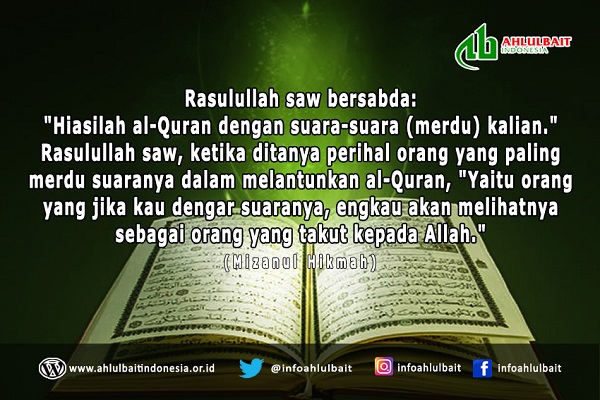 Rasulullah saw bersabda: “Hiasilah al-Qur’an dengan suara merdu kalian.” Rasulullah saw, ketika ditanya perihal orang yang paling merdu suaranya dalam melantunkan al-Qur’an, “Yaitu orang yang jika...