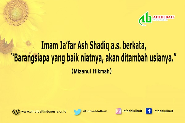 Imam Ja’far Ash Shadiq a.s. berkata, “Barangsiapa yang baik niatnya, akan ditambah usianya.” (Mizanul Hikmah)