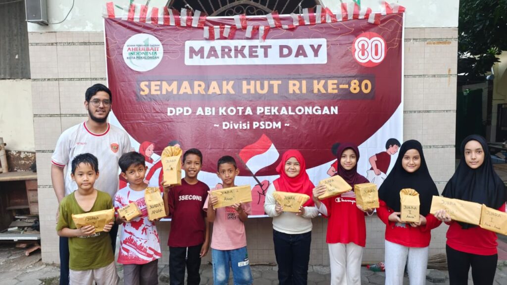Pekalongan, 18 Agustus 2025 — Dalam rangka memperingati Hari Ulang Tahun ke-80 Republik Indonesia, Departemen Pengembangan Sumber Daya Manusia (PSDM) DPD Ahlulbait Indonesia (ABI) Pekalongan sukses menyelenggarakan Market Day yang sarat kehangatan dan kekeluargaan. Acara ini digelar pada Senin (18/8), di halaman sekretariat ABI dan mengambil inspirasi dari tema nasional tahun ini, “Bersatu, Berdaulat, Rakyat Sejahtera, Indonesia Maju”, untuk memperkuat solidaritas antar anggota.