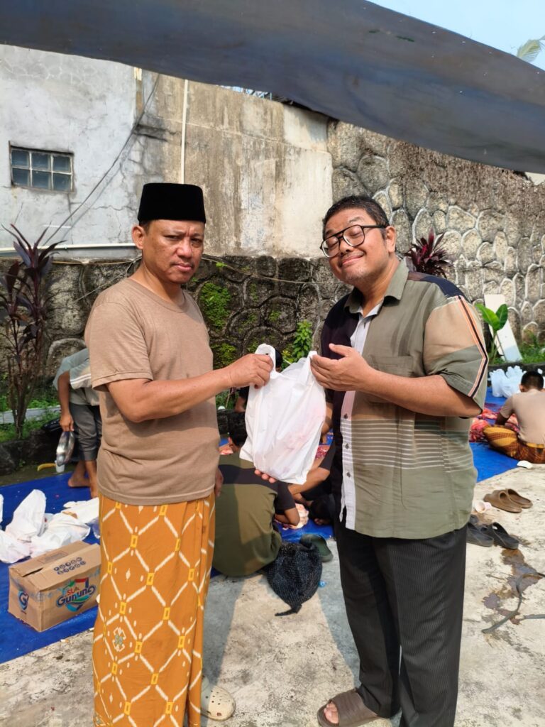 Wakil Ketua DPW ABI DKI Jakarta Ust Hasan Nahrawi membagikan daging kurban kepada pengurus DPD ABI Jakarta Selatan Ust Musa Shahab