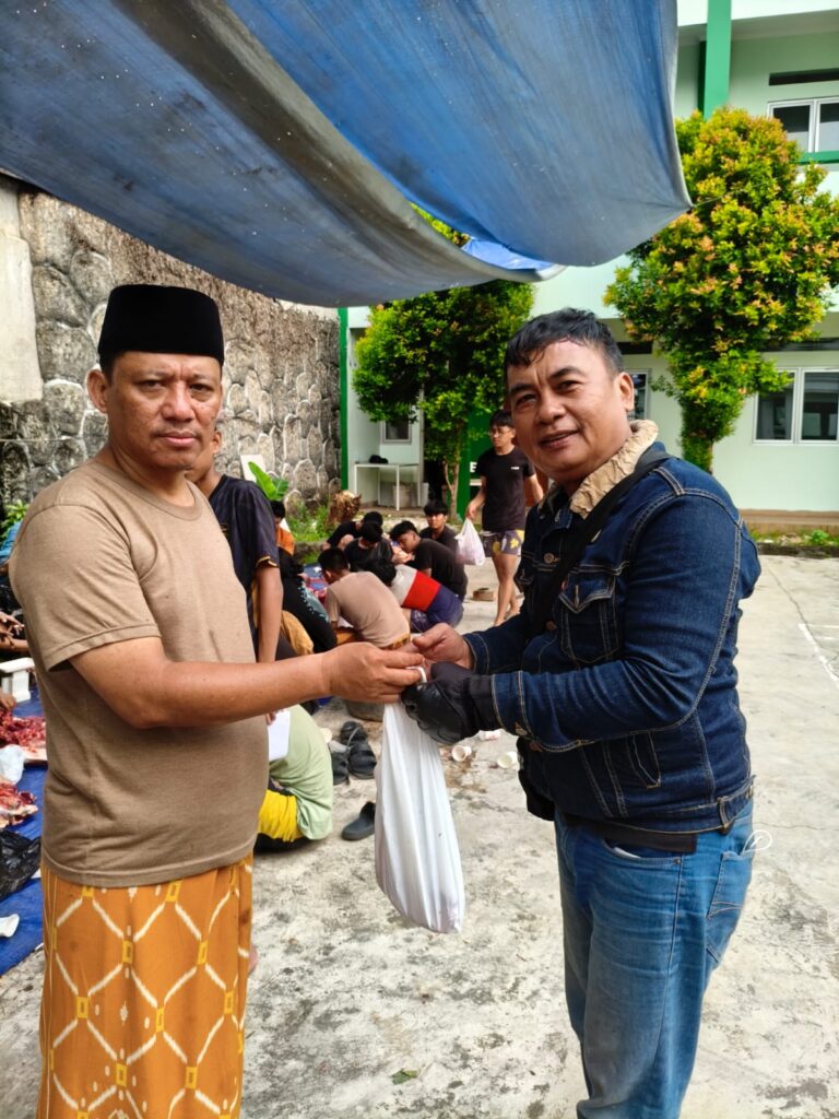Wakil Ketua DPW ABI DKI Jakarta Ust Hasan Nahrawi membagikan daging kurban kepada pengurus DPD ABI Jakarta Barat Bapak Hendro Purwanto