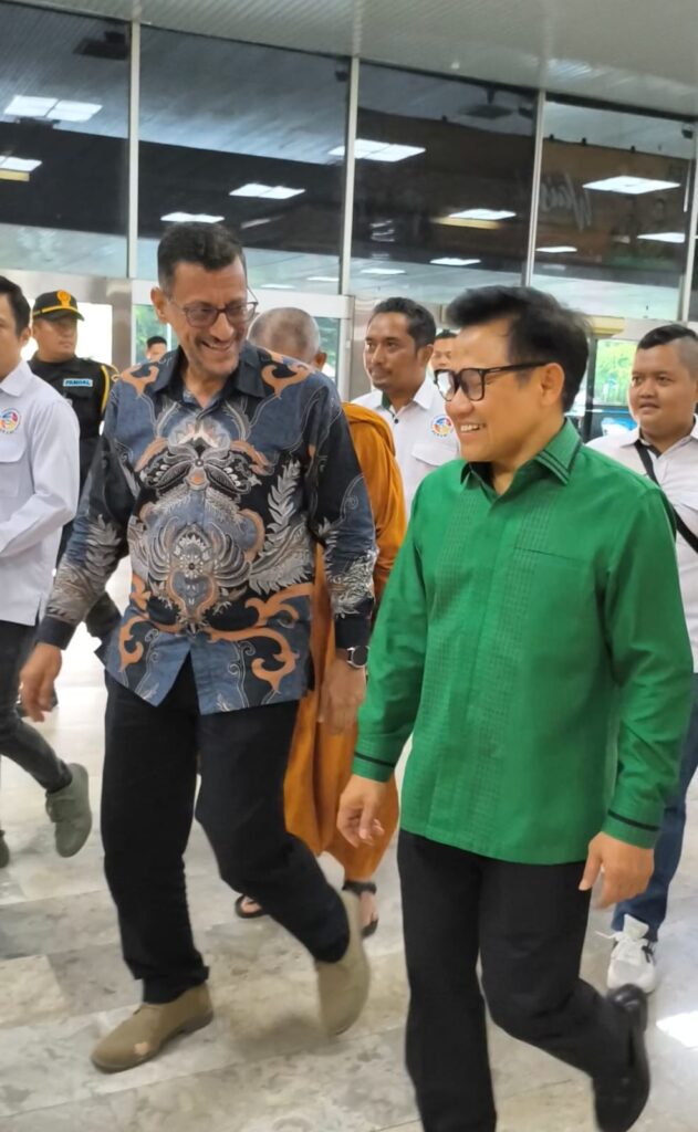 Ketua DPW ABI DKI Jakarta R. Anis Muhamad, SE.,SH., MH., BKP bersama Dr. A. Muhaimin Iskandar, M.Si. pada peringatan Waisak Nasional PKB 2025 di Gedung Nusantara IV DPR RI