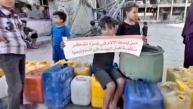 “Kita semua merasa senang menyaksikan keluarga dan anak-anak di Jalur Gaza maupun di Tepi Barat yang hari-hari ini mengalami kelangkaan makanan, air minum, dan sarana hidup lainnya, bisa tersenyum bahagia ketika menerima makanan, air minum, dan kebutuhan pokok mereka,” tutur Ustadz Zahir Yahya.