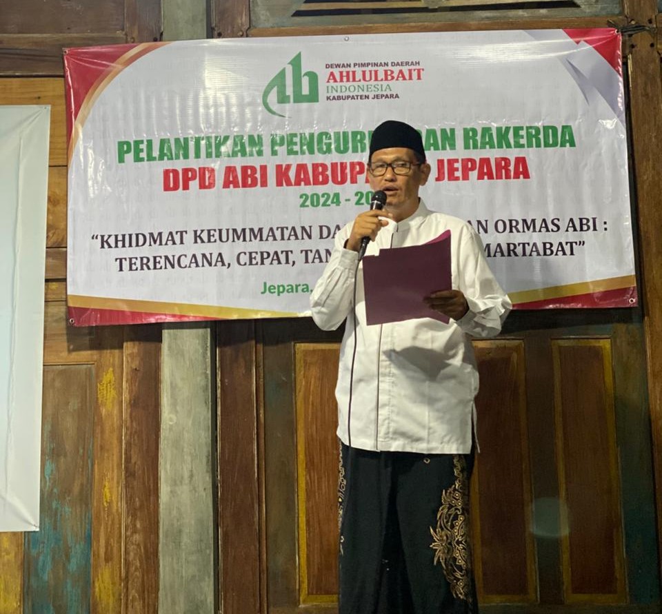 Jepara, 12 Oktober 2025 — Dewan Pimpinan Daerah Ahlulbait Indonesia (DPD ABI) Kabupaten Jepara menggelar pelantikan pengurus dan Rapat Kerja Daerah (Rakerda) masa khidmat 2024–2029 di Omah Amin, Banjaran Bangsri, Jepara, Ahad (12/10). Kegiatan ini mengusung tema “Khidmat Keumatan dan Kebangsaan Ormas ABI: Terencana, Cepat, Tanggap, dan Bermartabat.”
