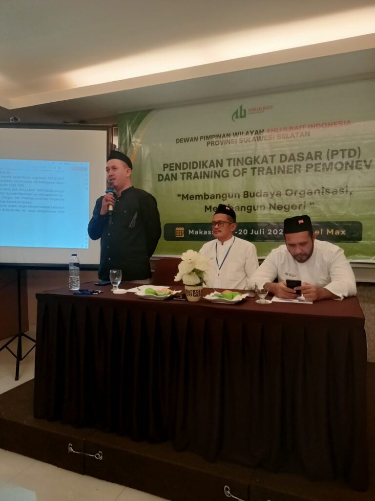 Makassar, 20 Juli 2025 — Semangat berkhidmat dan komitmen kaderisasi membuncah selama dua hari penuh, 19–20 Juli 2025, dalam gelaran Pendidikan Tingkat Dasar (PTD) yang diselenggarakan oleh Dewan Pimpinan Wilayah (DPW) Ahlulbait Indonesia (ABI) Sulawesi Selatan di Hotel Max Panakkukang, Makassar. Mengusung tema “Membangun Budaya Organisasi, Membangun Negeri,” kegiatan ini menjadi ruang pembinaan sekaligus penyemaian nilai-nilai dasar perjuangan organisasi.