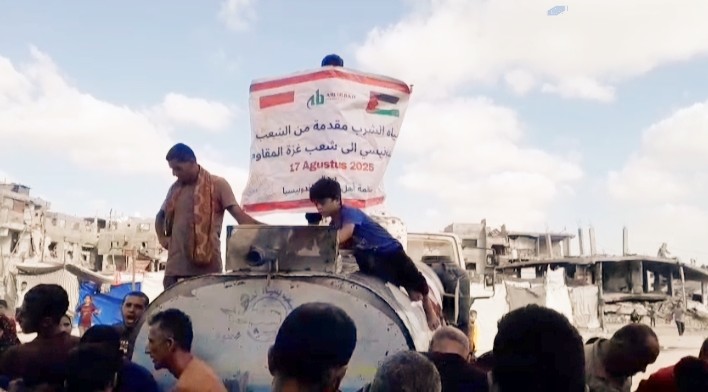 Dalam kebuntuan inilah, tepat pada peringatan HUT ke-80 Kemerdekaan Republik Indonesia, Minggu 17 Agustus 2025, sebuah kabar dari tanah air hadir laksana oase di padang tandus. Ahlulbait Indonesia (ABI), sebuah organisasi keagamaan berbasis komunitas, berhasil menyalurkan lima truk, masing-masing berisi lima ribu liter air minum yang langsung ke kawasan Jabalia, Gaza. Dokumentasi lapangan memperlihatkan air itu dituangkan ke jeriken, disambut ibu-ibu dan anak-anak yang meneguknya dengan lega.