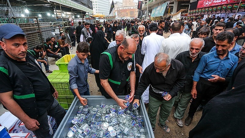 Setiap tahun, jutaan peziarah Arbain dari berbagai kota di Irak dan negara-negara dunia, terutama dari negara-negara Muslim mengunjungi Karbala untuk menghadiri peringatan Arbain Huseini as. Setelah tiba di Irak, para peziarah berjalan kaki dari kota Najaf menuju Karbala yang berjarak sekitar 82 km untuk menghadiri acara Arbain Huseini as. Masyarakat Irak menyediakan makanan, minuman dan tempat istirahat gratis di sepanjang rute ini.